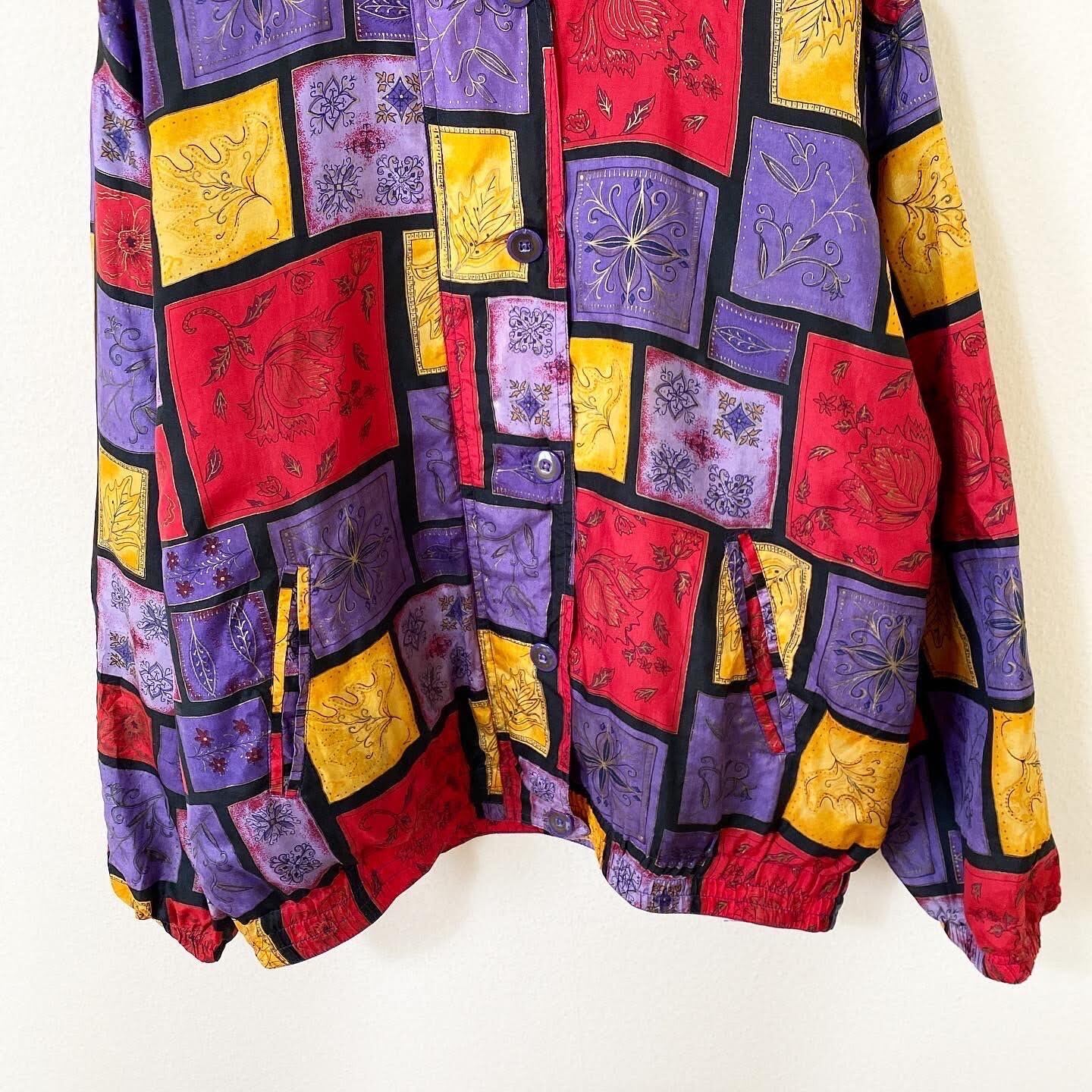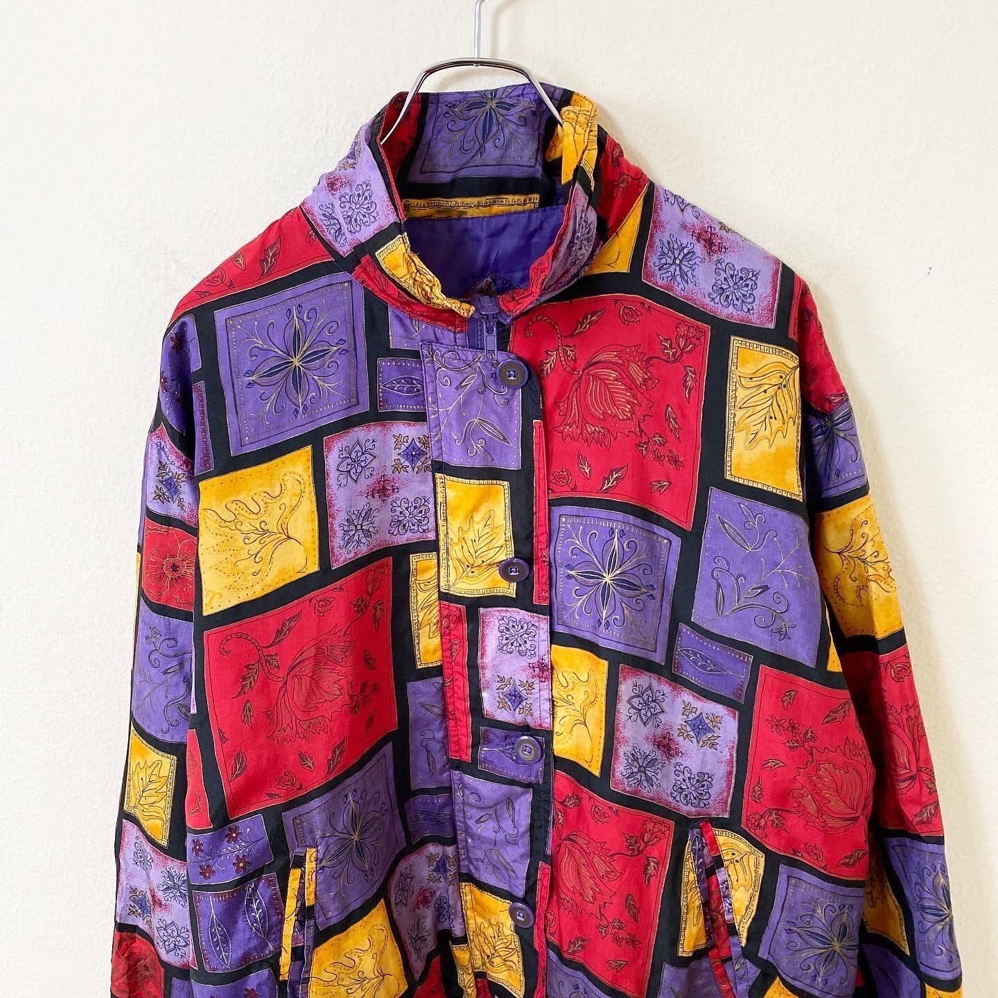 90s Vintage 総柄 シルク ジャケット ブルゾン 古着 ヴィンテージ