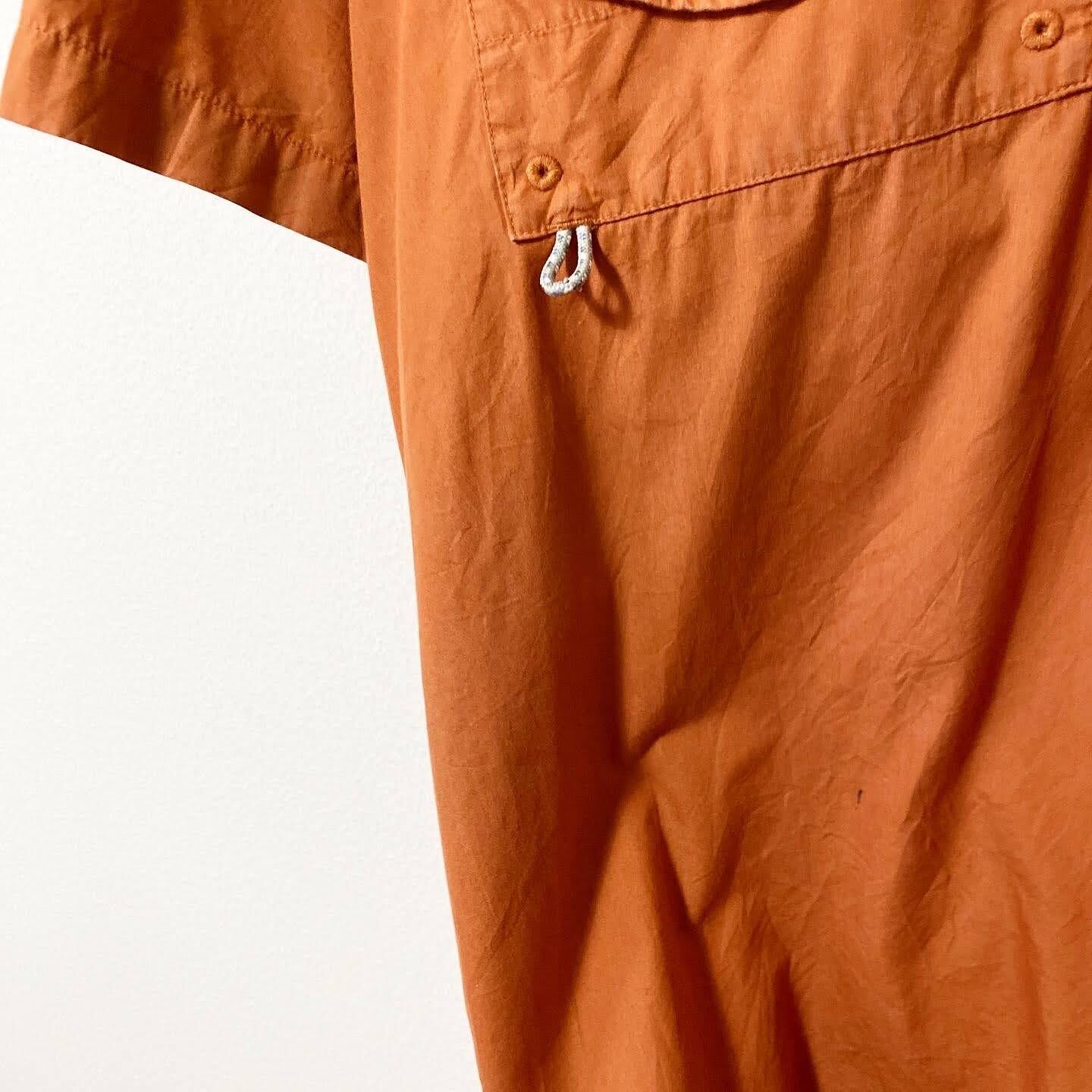 程よい発色のオレンジボディとフィッシングラインらしいポケットや通気性抜群のメッシュなどこだわりの感じられる細かいディテールがたまらなく良い雰囲気の1着です。