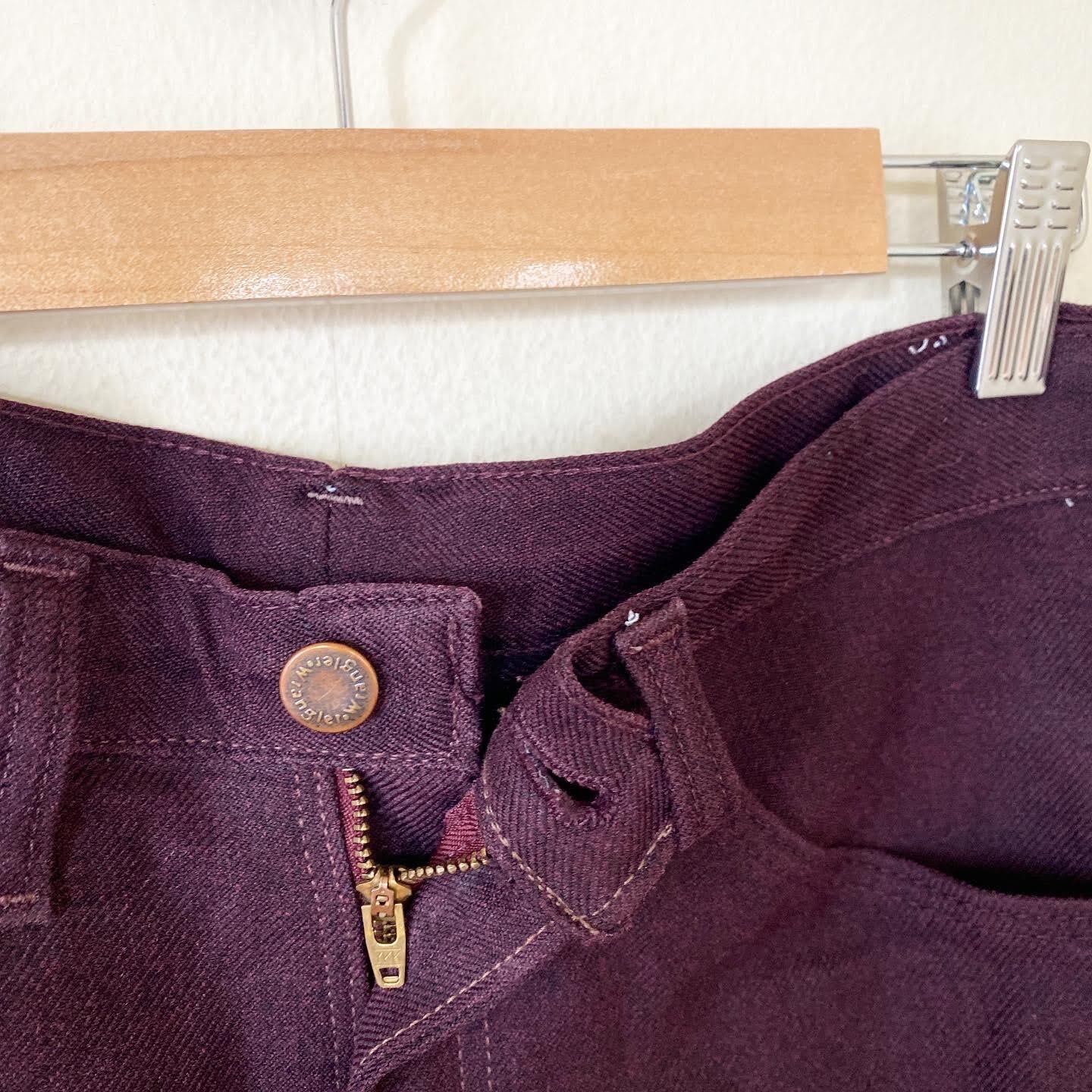 珍しいパープルの色合いと程よくフレアしたシルエット、センタープリーツのデザインがとても良い雰囲気の1着です。