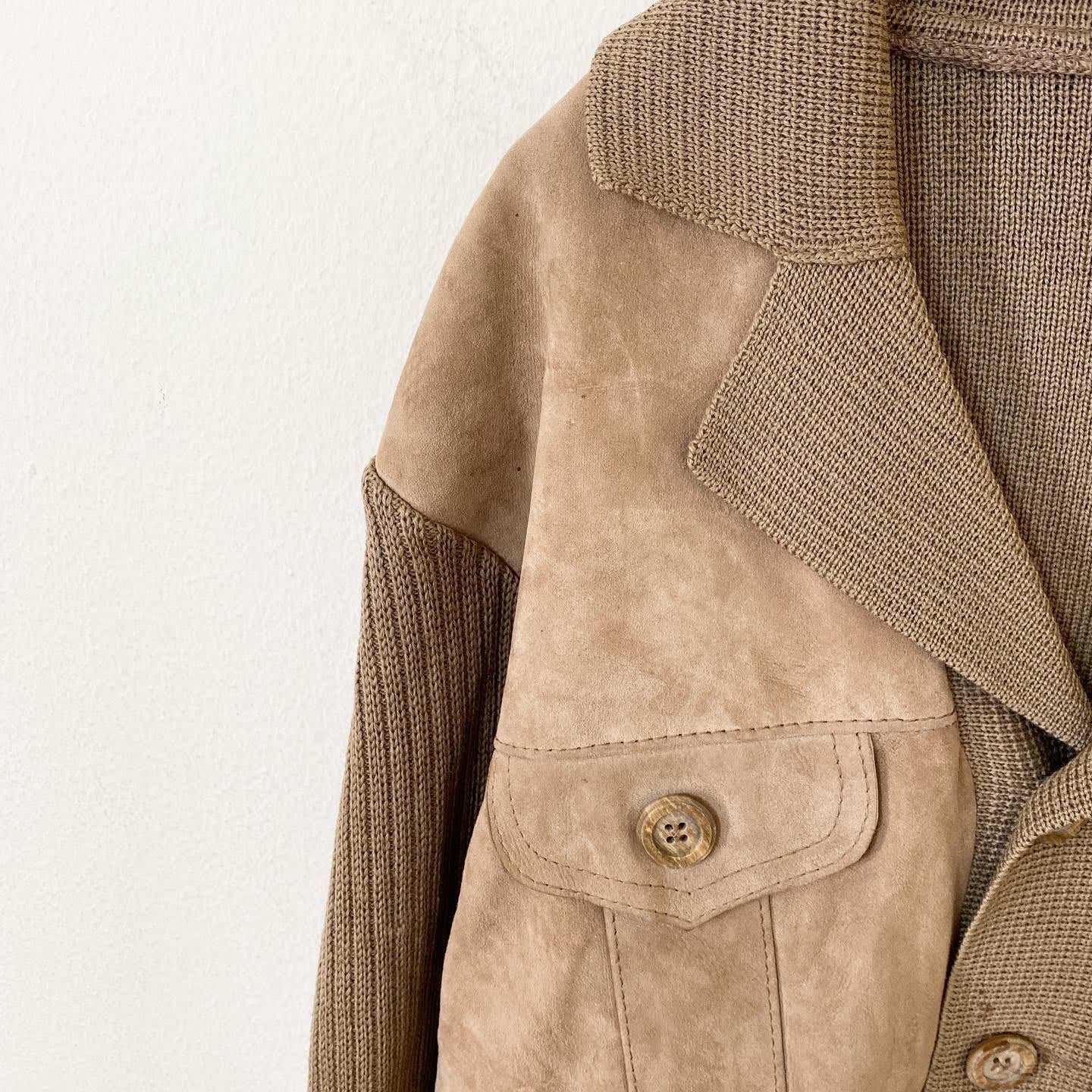 ベージュを基調とした色合いとレザー×ニットの異なる素材感から生まれるお洒落な風合いがたまらなく良い雰囲気の1着です。