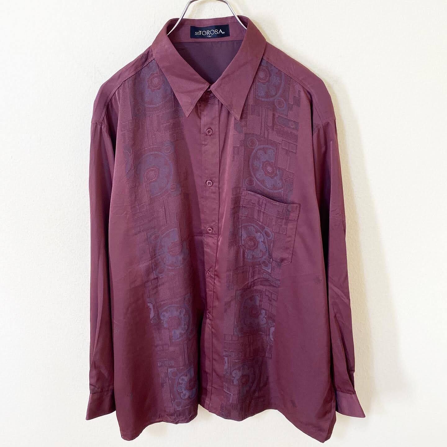 Vintage デザイン シャツ 長袖 レーヨン 古着 ヴィンテージ レトロ