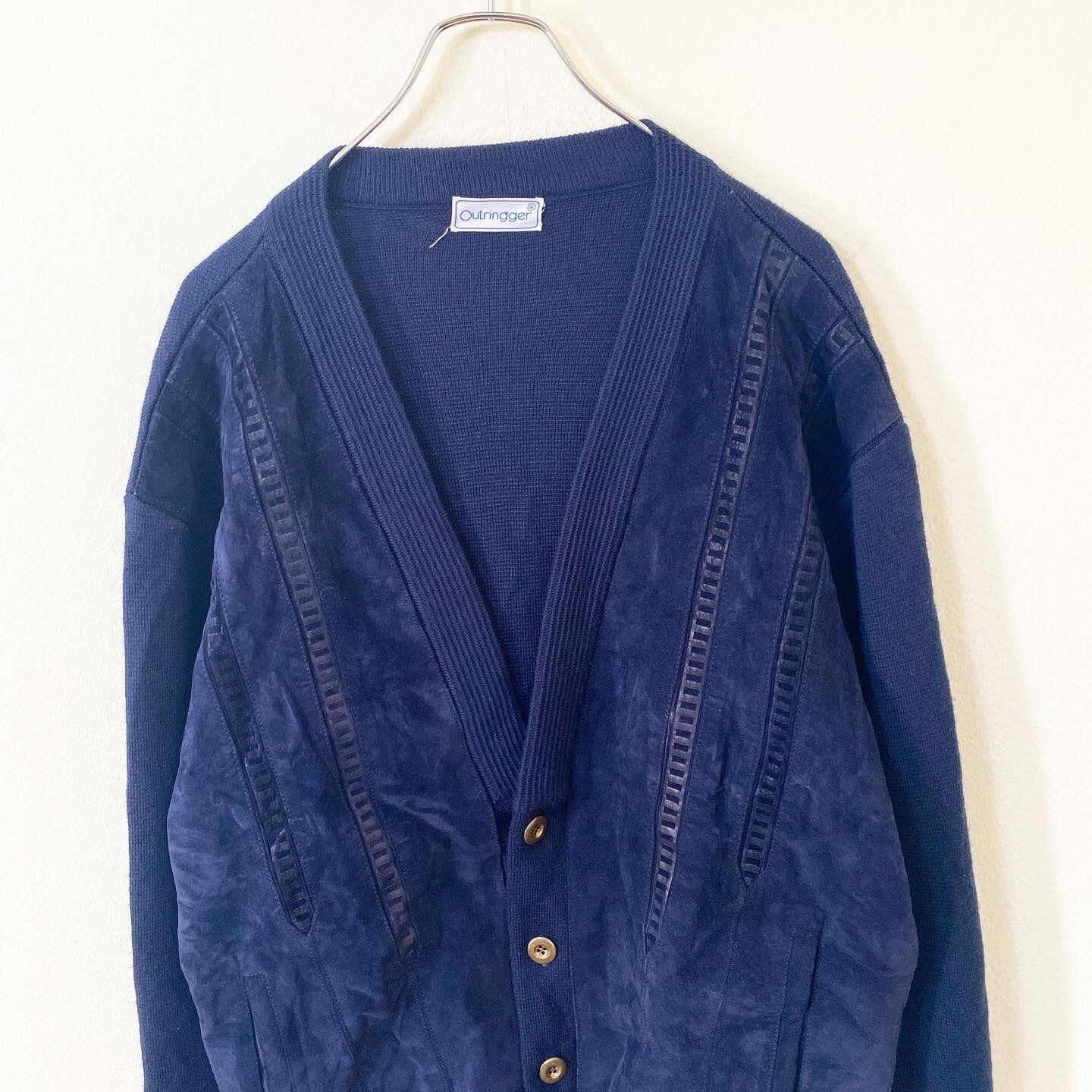 イタリア製 Vintage レザー ニット カーディガン 古着 ヴィンテージ