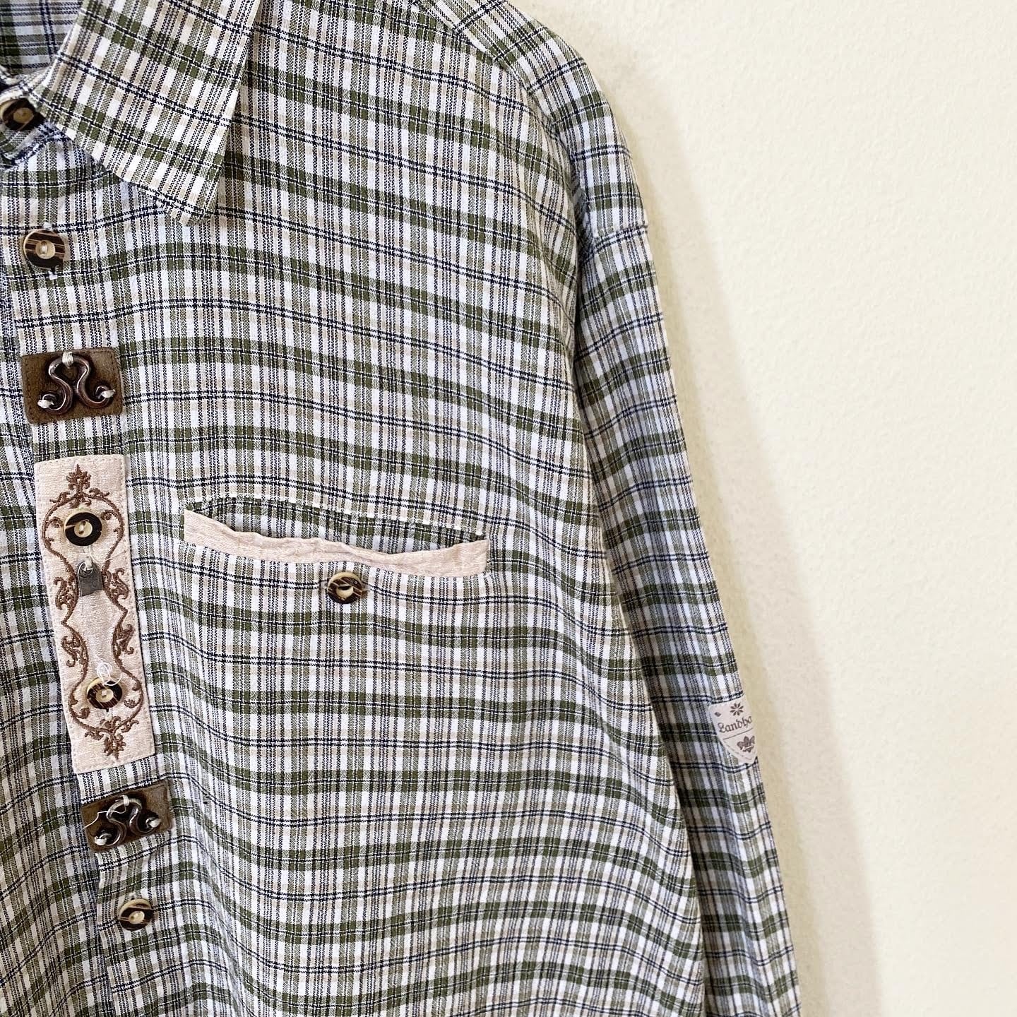Euro Vintage 80s〜90s チロリアンシャツ チェック 長袖 古着