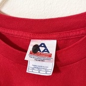 目を惹く赤のボディに、フロントにデザインされたプリントが古着感満載でとても良い雰囲気の1着です。