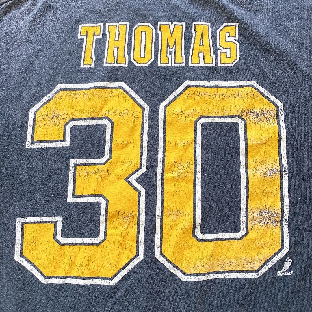 ダークグレーのボディに、アメリカのボストンを拠点としているプロアイスホッケーチーム、ボストン・ブルーインズがプリントされた古着感満載の1着です。