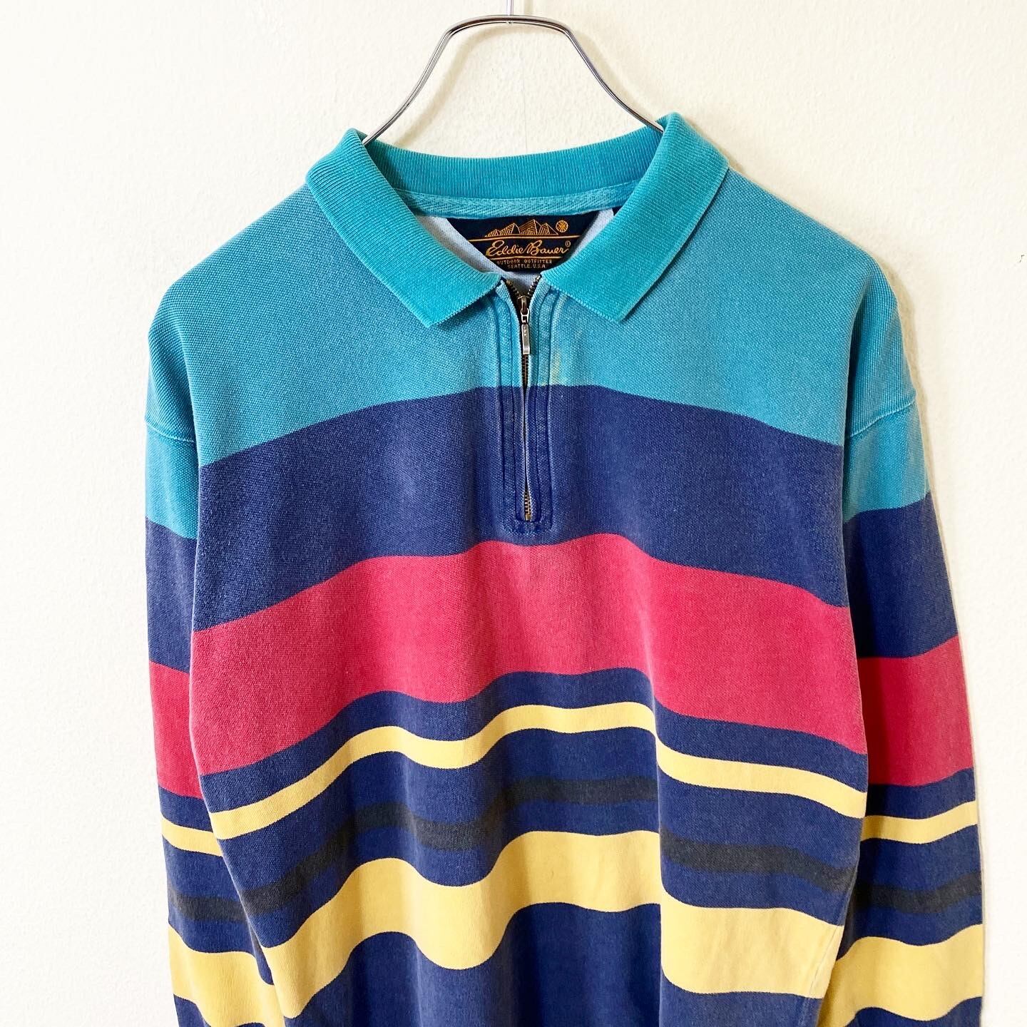 80s〜90s Eddie Bauer L/S ハーフジップボーダーポロシャツです。