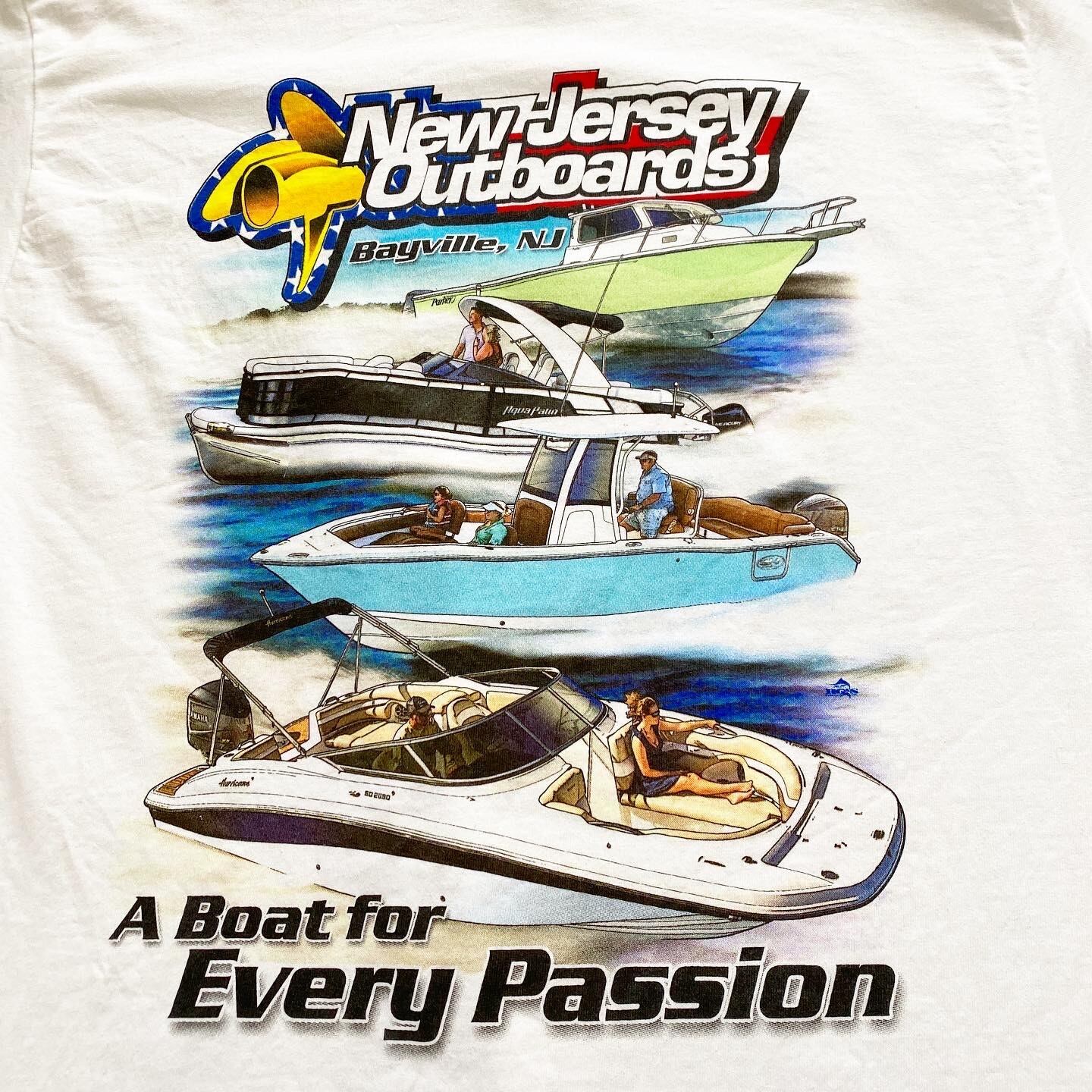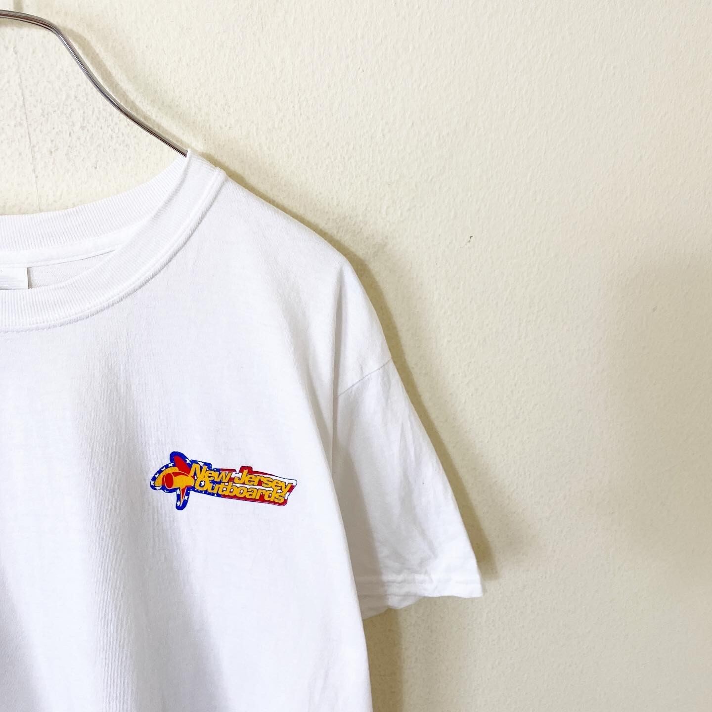 ホワイトのボディと胸元、バックに描かれたプリントデザインの風合いが非常に良い雰囲気の1着です。