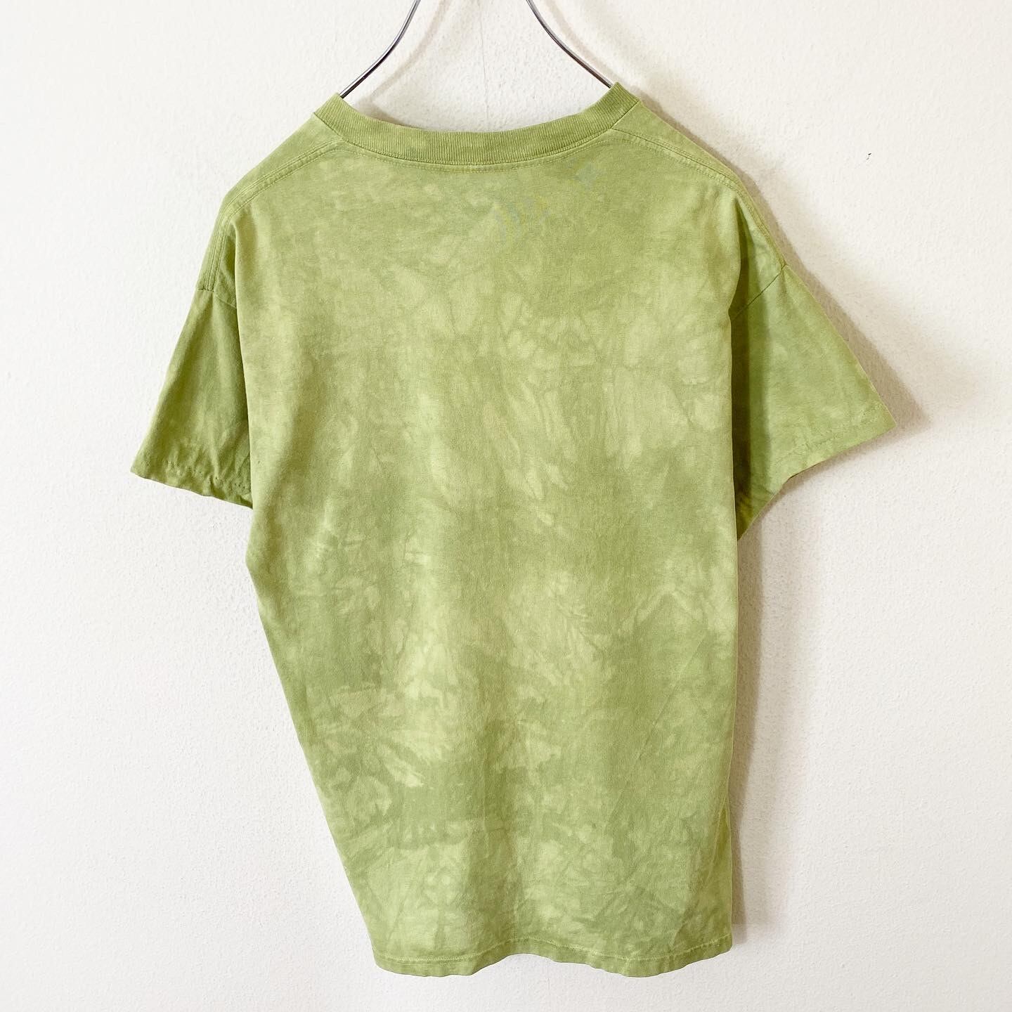 鮮やかなライトグリーンのタイダイボディと目を惹くプリントデザインの風合いがたまらなく良い雰囲気の1着です。