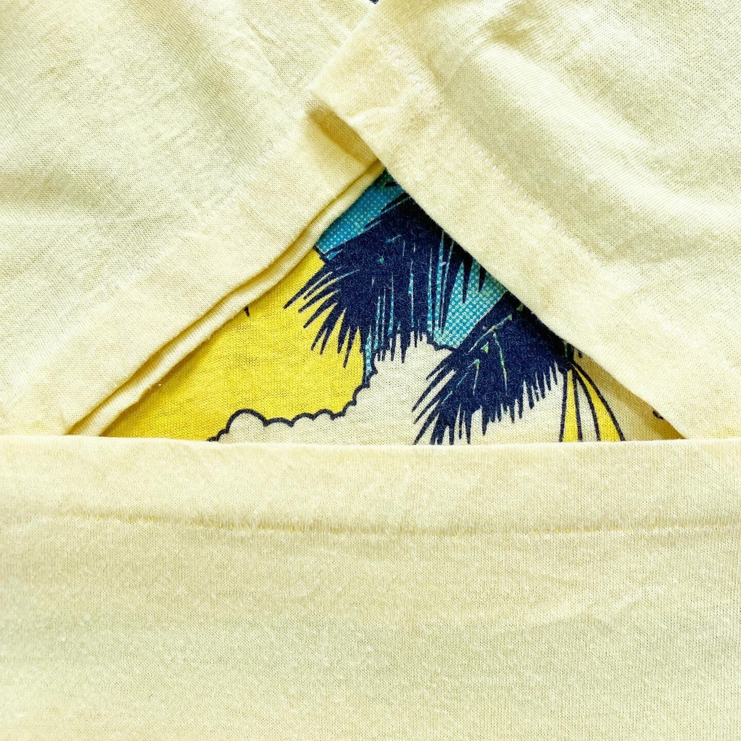 イエローのボディとフロントのプリントデザインの風合いがたまらなく良い雰囲気の1着です。