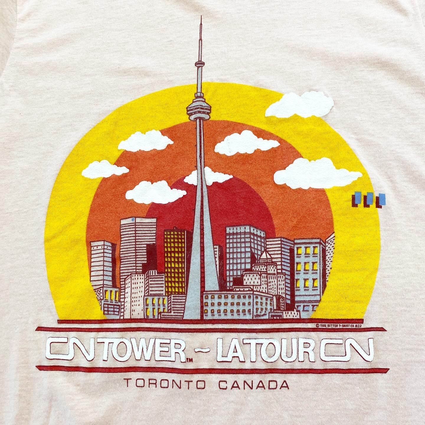 淡いピンクのボディとカナダ・トロントCNタワーが描かれたプリントデザインの風合いがたまらなく良い雰囲気の1着です。