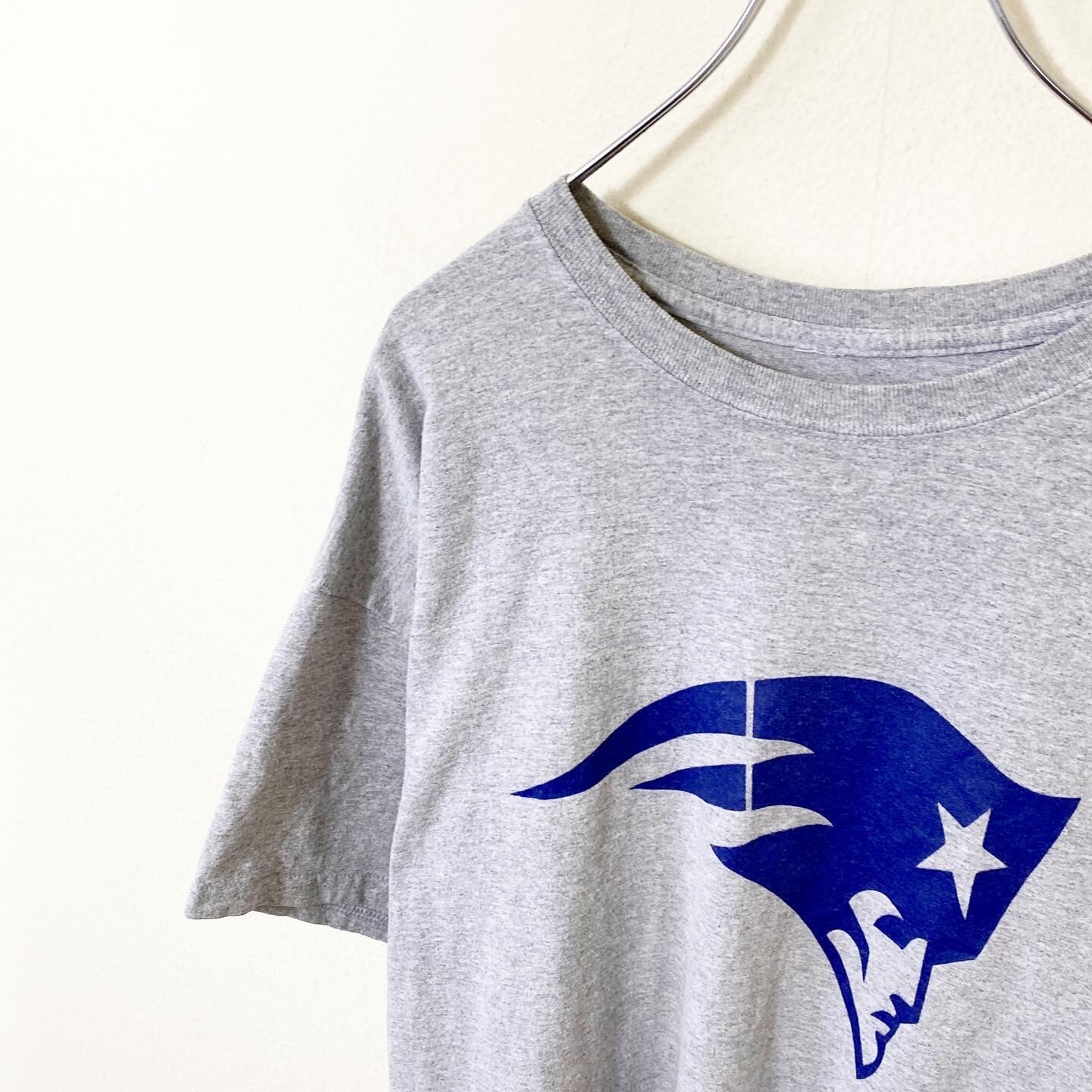 グレーのボディに描かれたアメリカのNFLチーム、ニューイングランド・ペイトリオッツのチームロゴがたまらなく良い雰囲気の1着です。