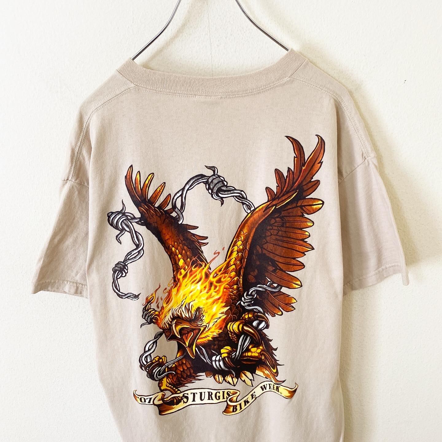 ベージュのボディとバイクウィークのプリントデザインがたまらなく良い雰囲気の1着です。