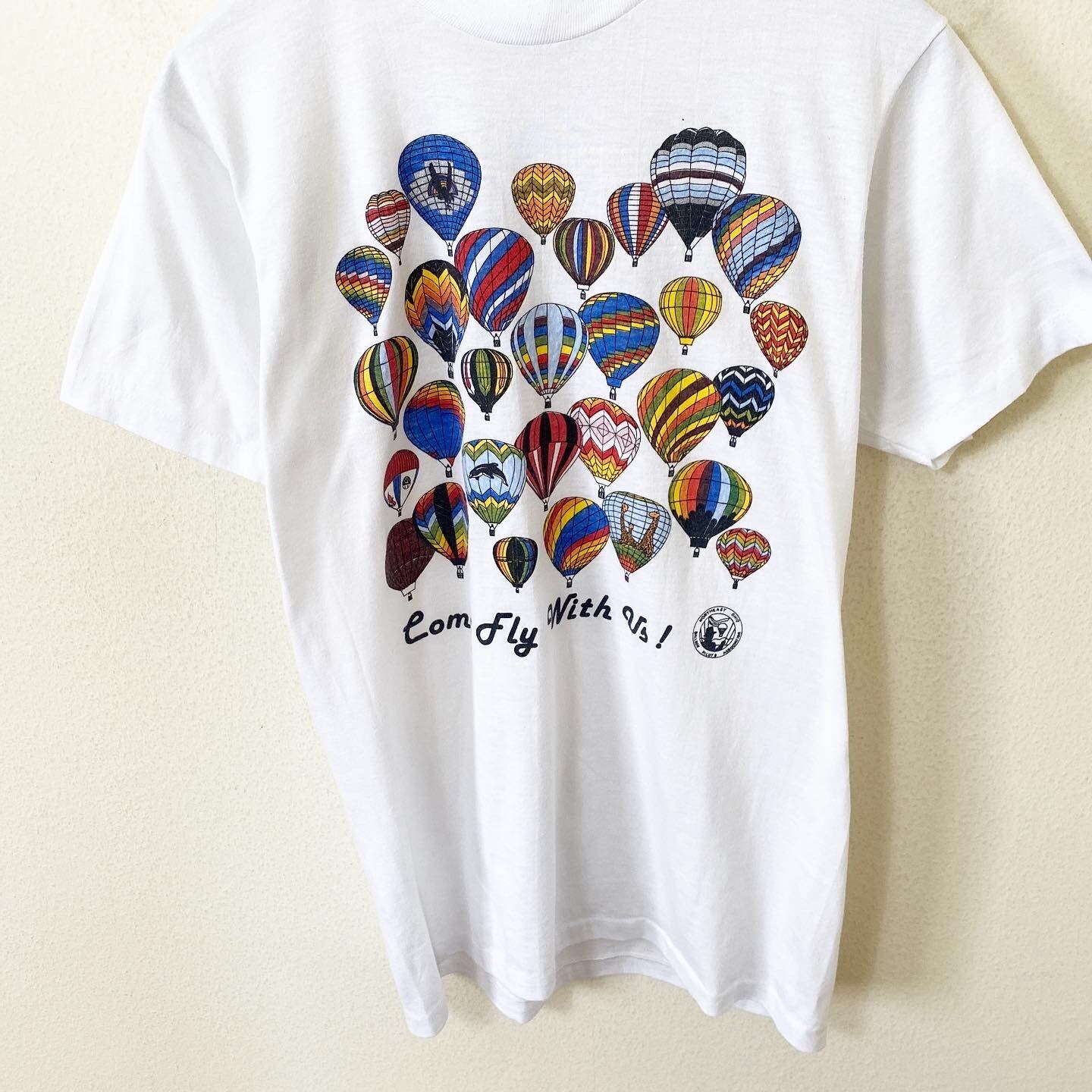 ホワイトのボディとフロントのアート感溢れる気球のプリントデザインがたまらなく良い雰囲気の1着です。