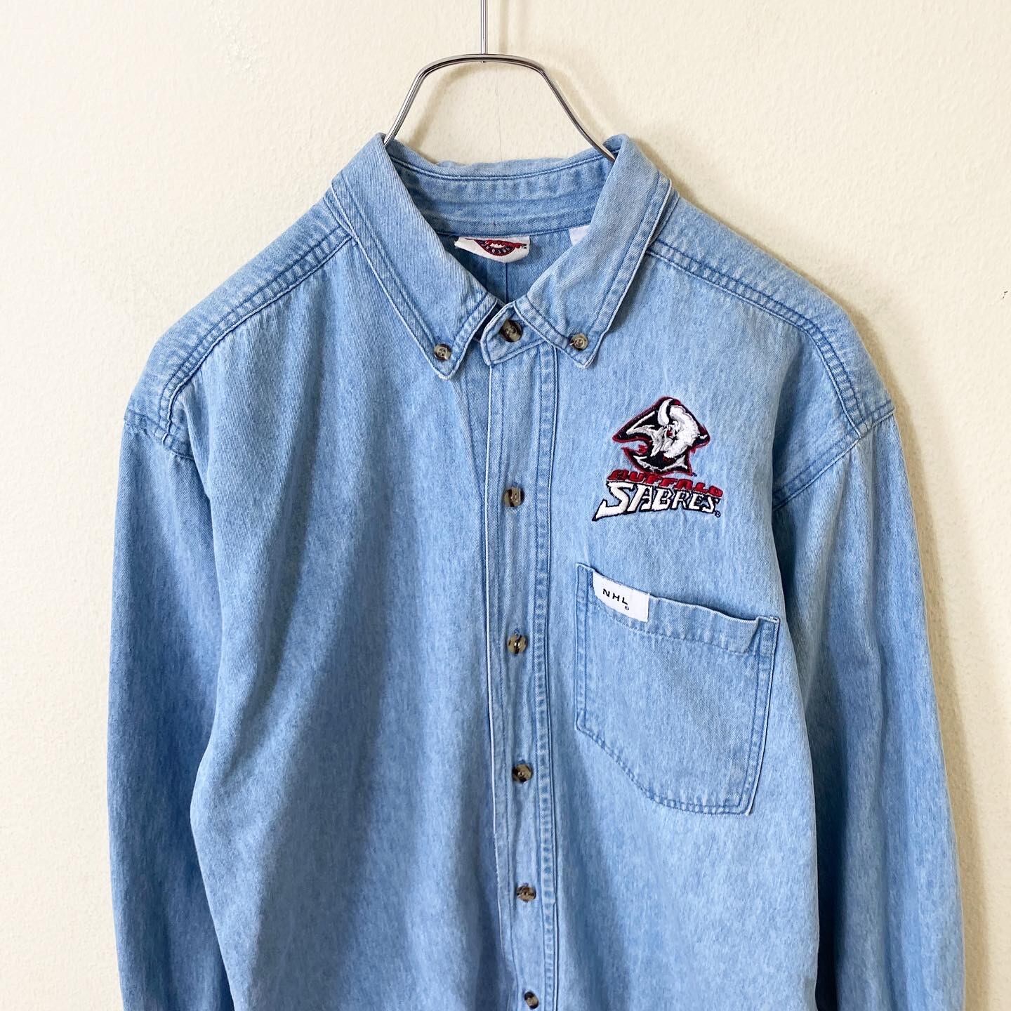 90s〜00s NHL Vintage L/S 刺繍デザインデニムシャツです。