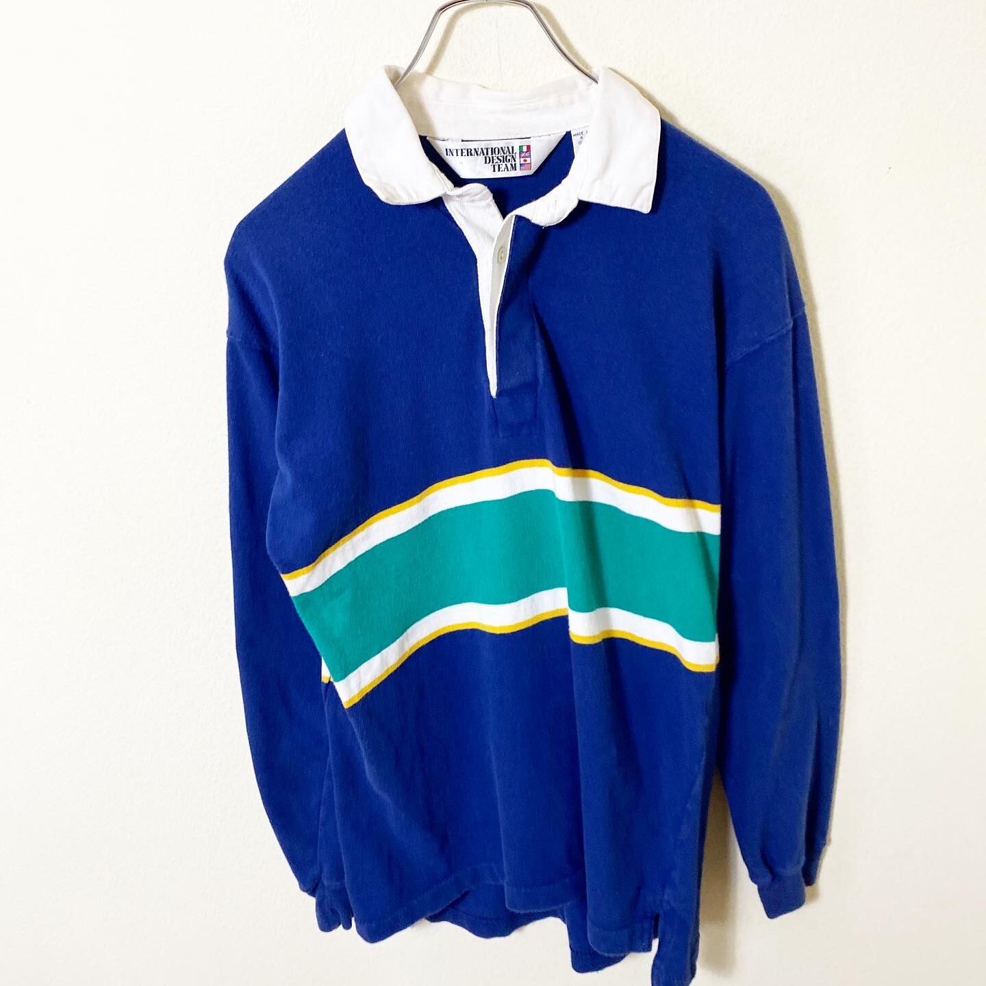 90s Vintage ボーダー 長袖 ラガーシャツ 古着 ヴィンテージ