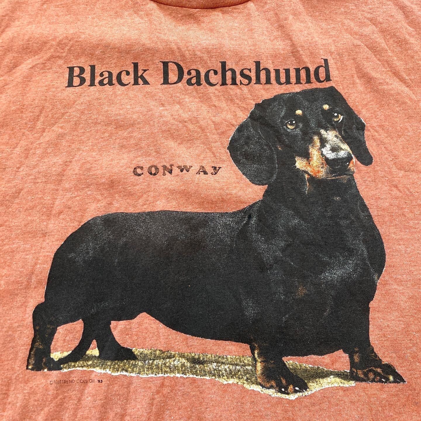 絶妙なカラーリングに後染めされたボディとフロントのダックスフンドのプリントデザインがたまらなく良い雰囲気の1着です。