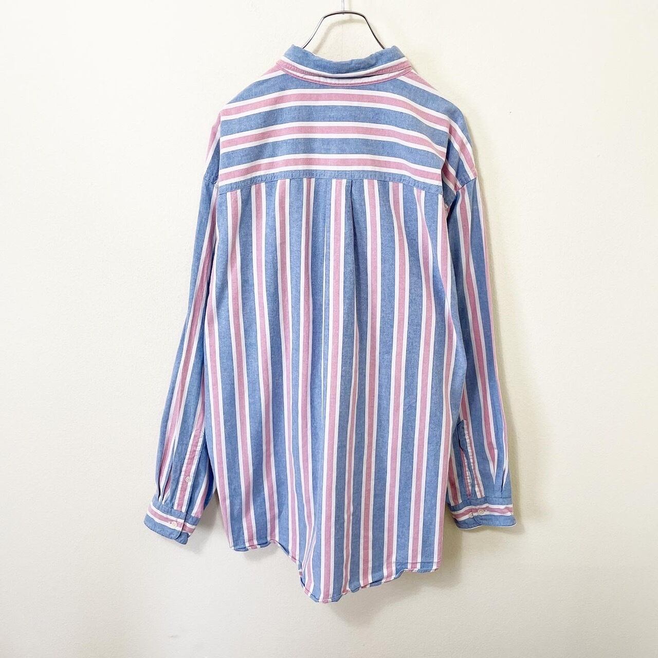 USA製 90s LANDS’END ストライプシャツ 長袖 古着 ヴィンテージ