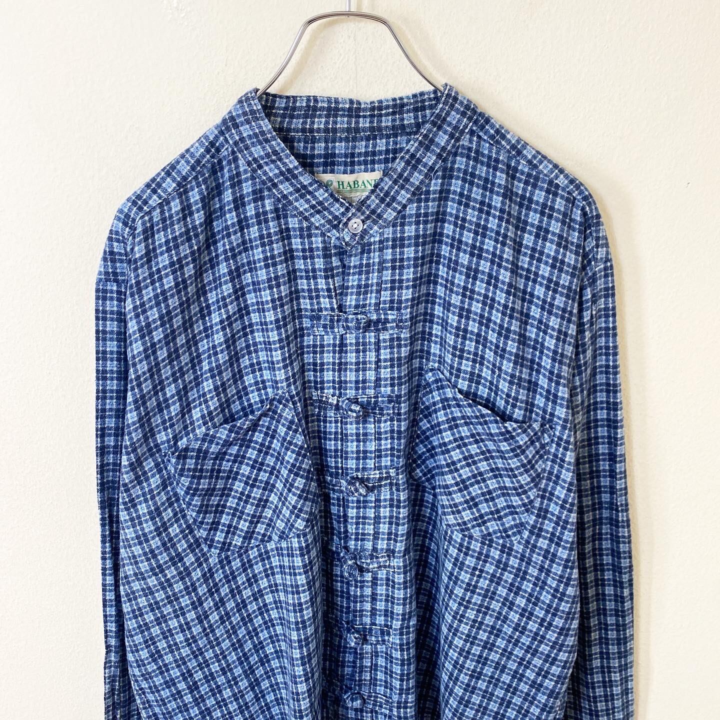 【リメイク】90s HABAND チャイナシャツ チェック 古着 ヴィンテージ