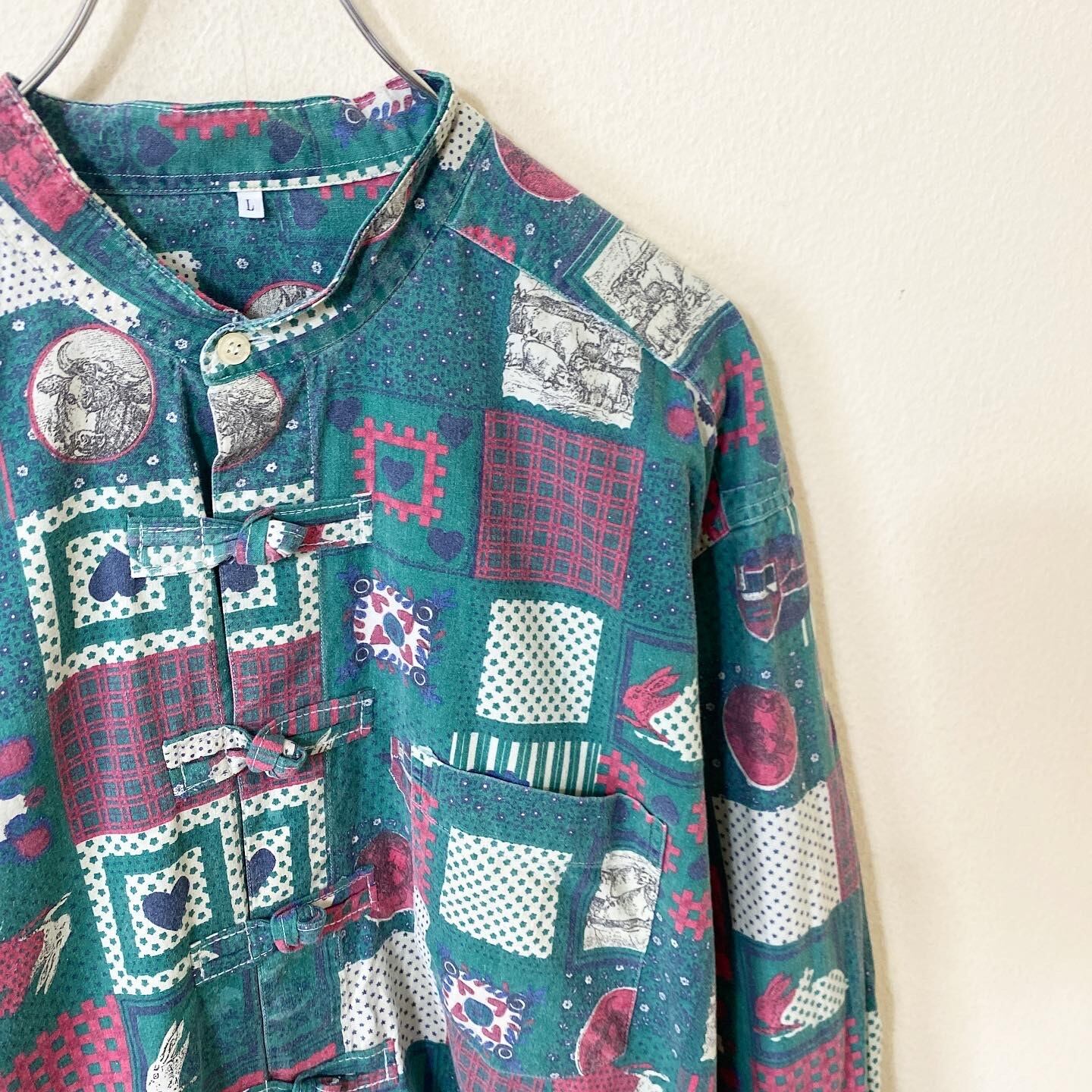 【リメイク】Vintage 総柄 チャイナシャツ 長袖 古着 ヴィンテージ