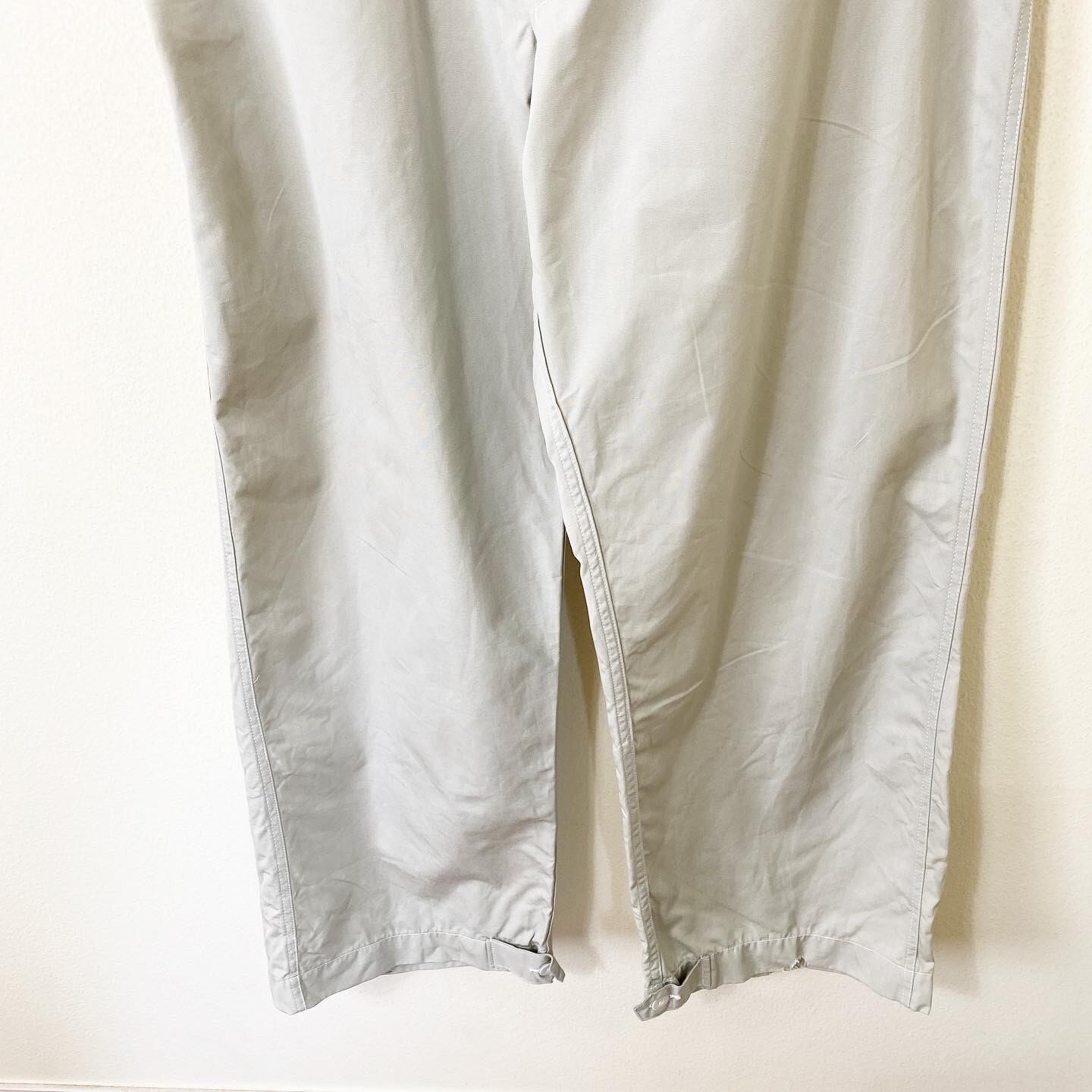 ウエストはコードで絞って裾はボタンにて調整可能、サイドポケットは貫通ポケットで簡単にアクセスできてフロントの股下も同様の貫通デザインです。