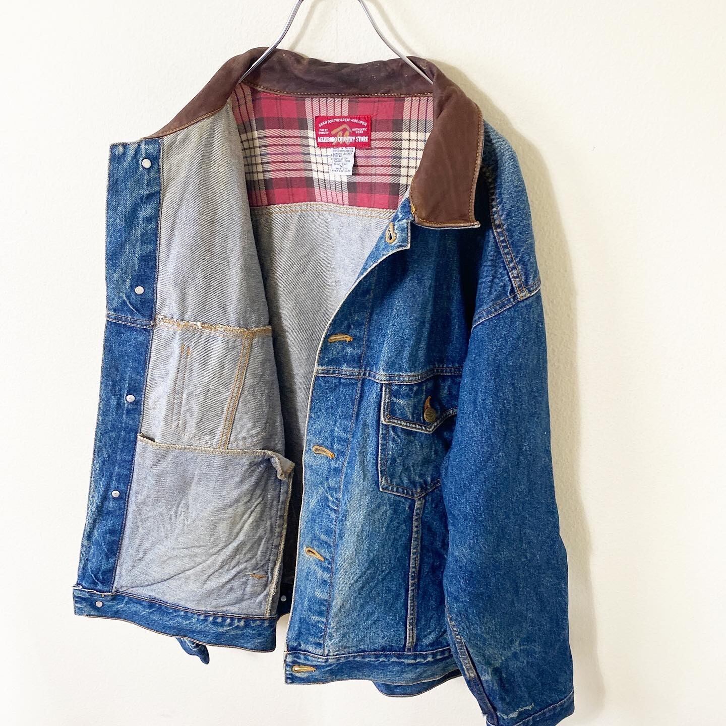 90s MARLBORO COUNTRY STORE レザー×デニムジャケットです。