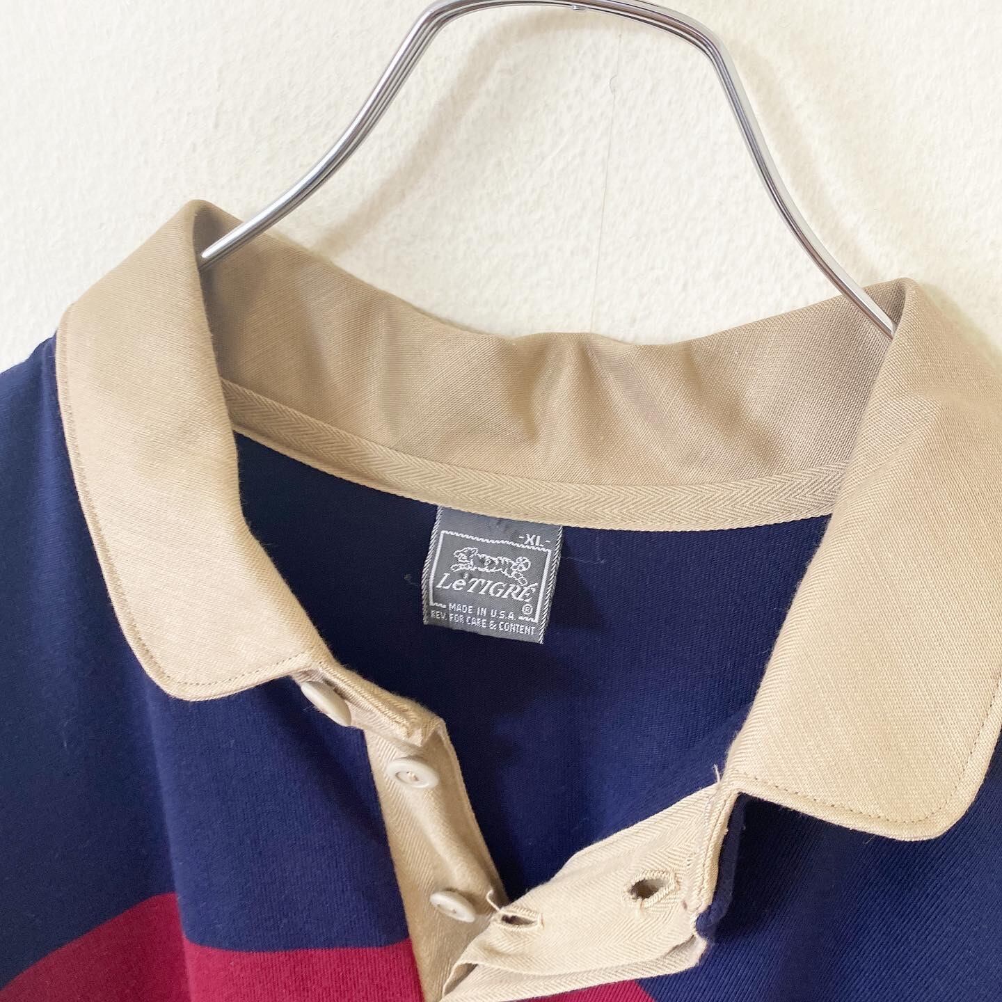 USA製 80s Le TIGRE ボーダー ポロシャツ 古着 ヴィンテージ