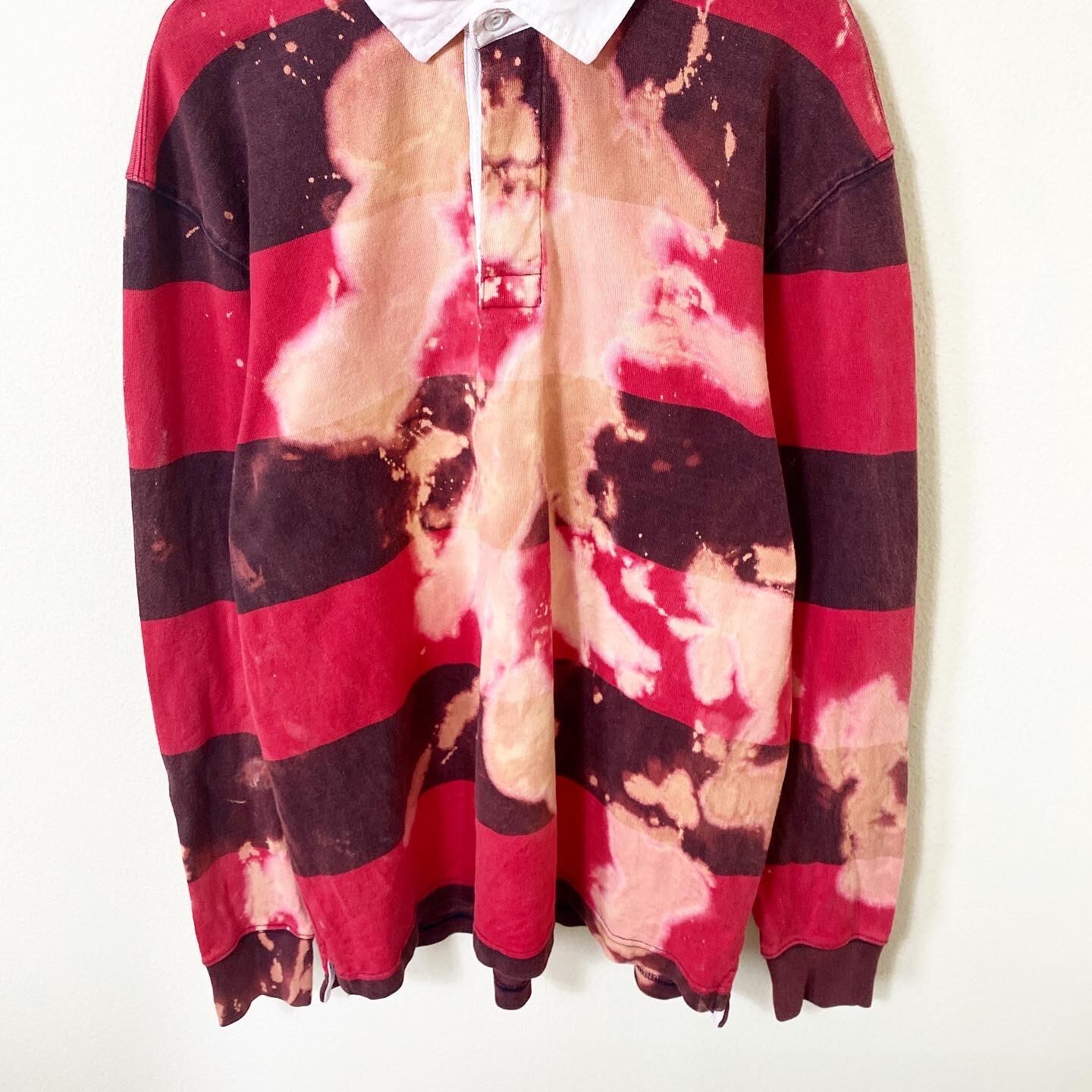パッと目を引くカラーリングのボーダーとアート感溢れるブリーチの風合いが非常に良い雰囲気の1着です。