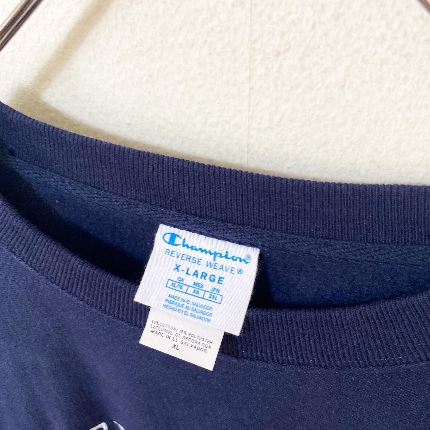 ネイビーのリバースボディとフロントのカレッジ刺繍デザインの風合いが非常に良い雰囲気の1着です。