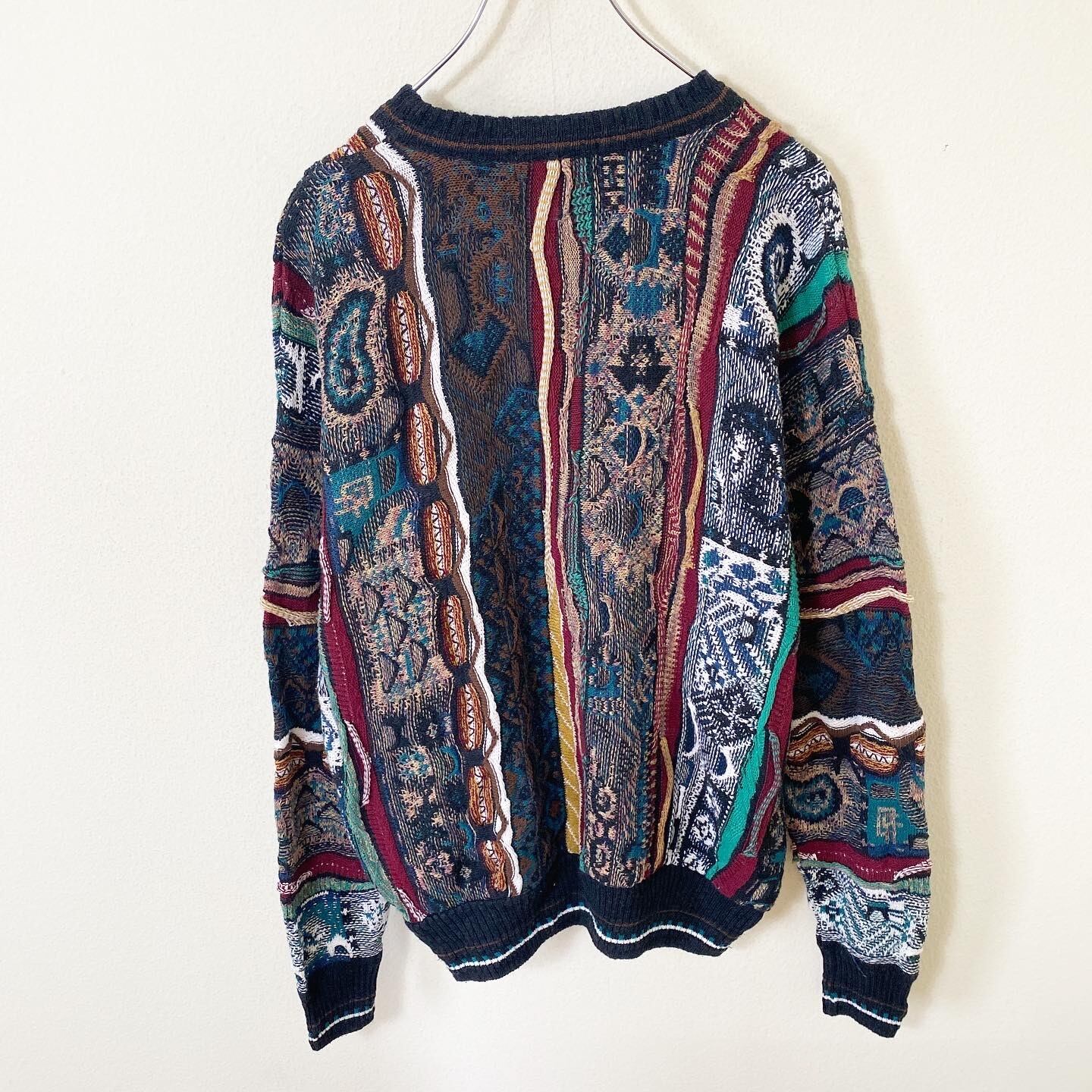 パッと目を惹くマルチカラーで施された3Dニットのデザインがたまらなく良い雰囲気の1着です。