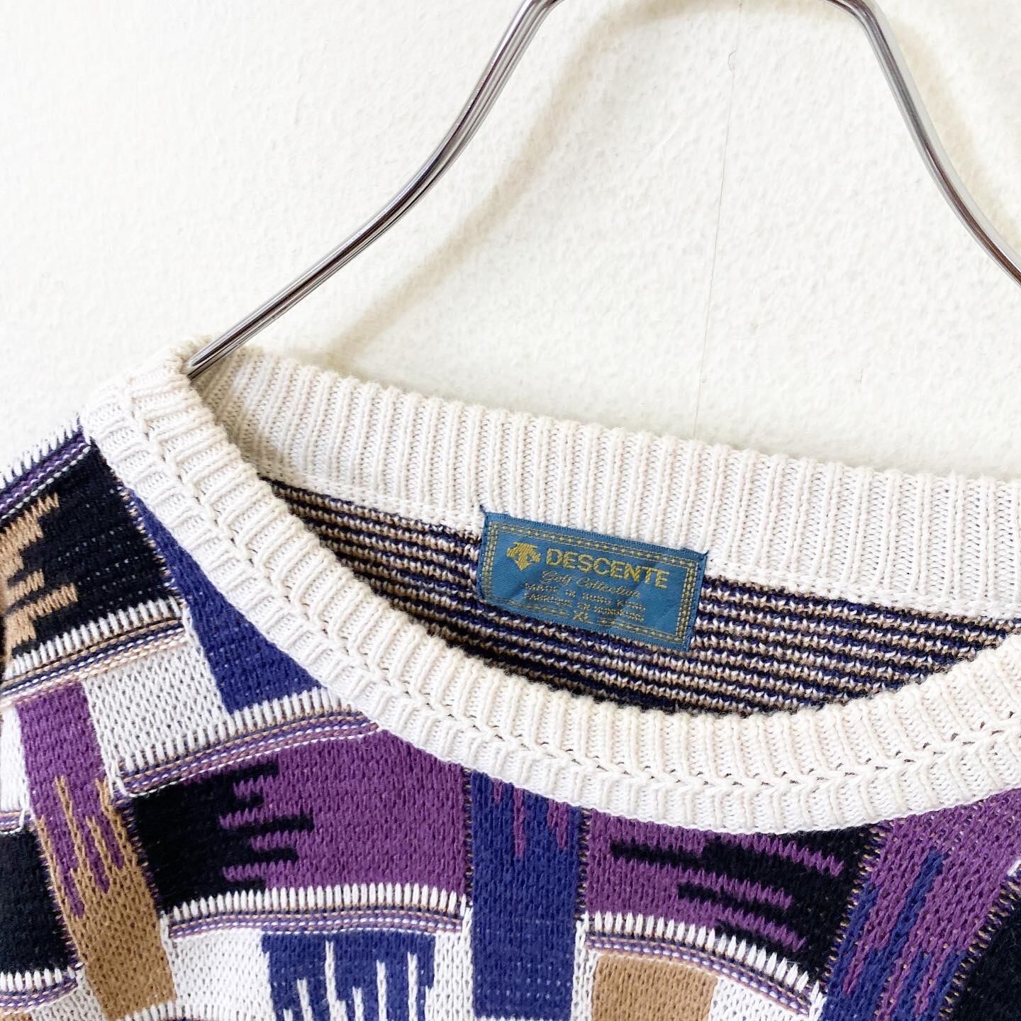 DESCENTE Vintage 3Dニット 総柄 古着 ヴィンテージ