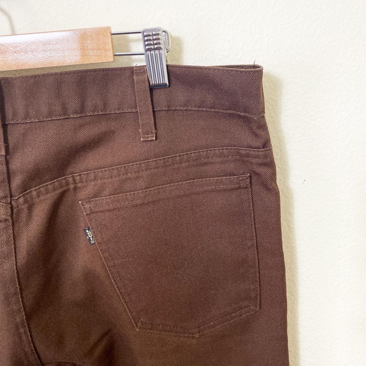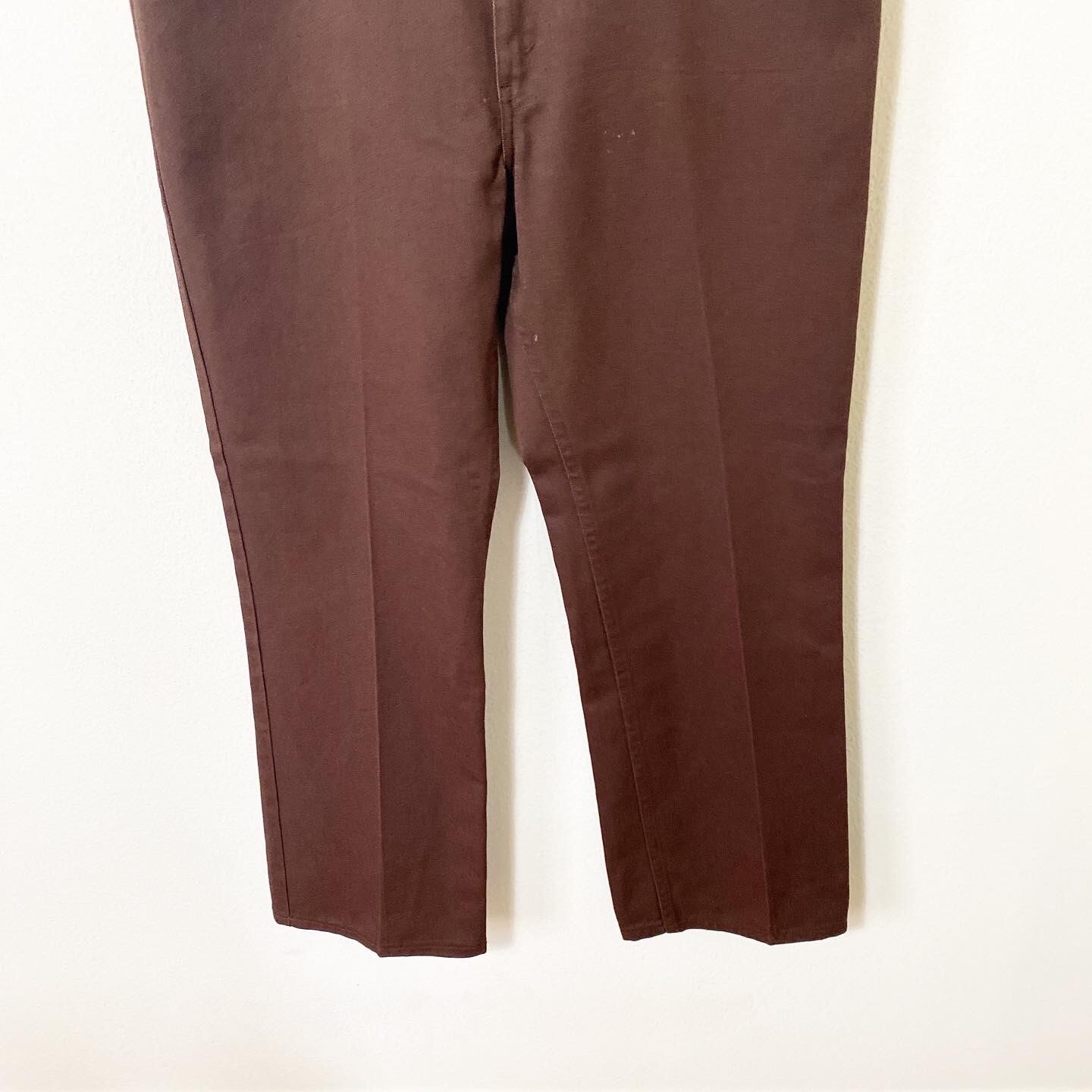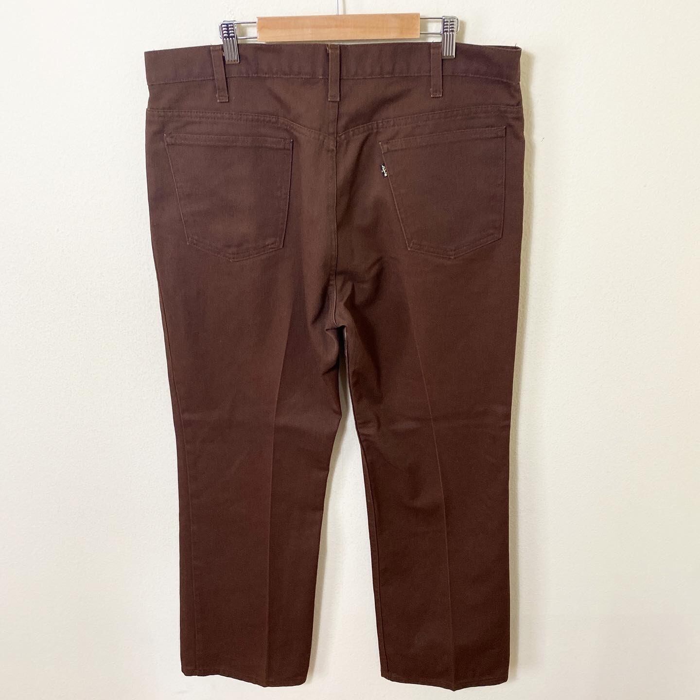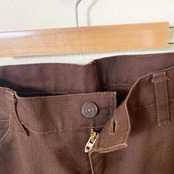 ブラウンのカラーリングとセンタープレス、フレアのシルエット感がたまらなく良い雰囲気の1着です。
