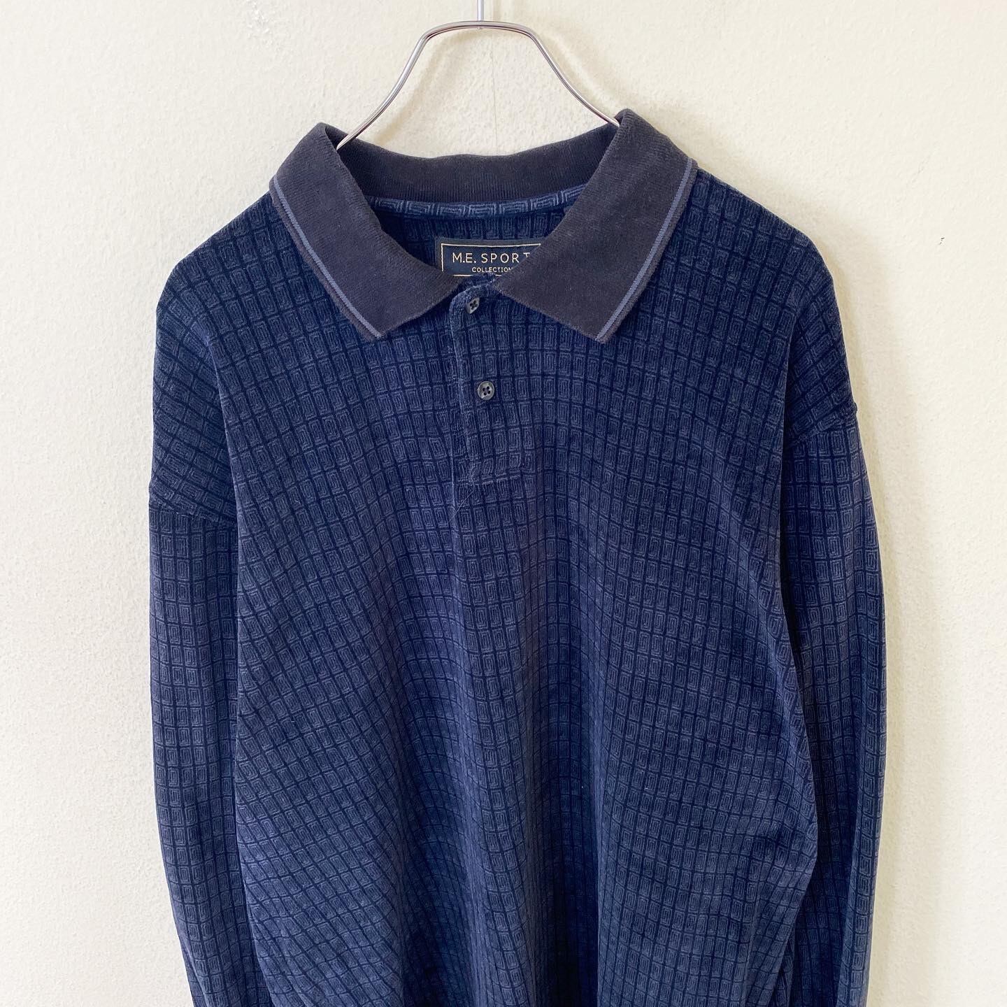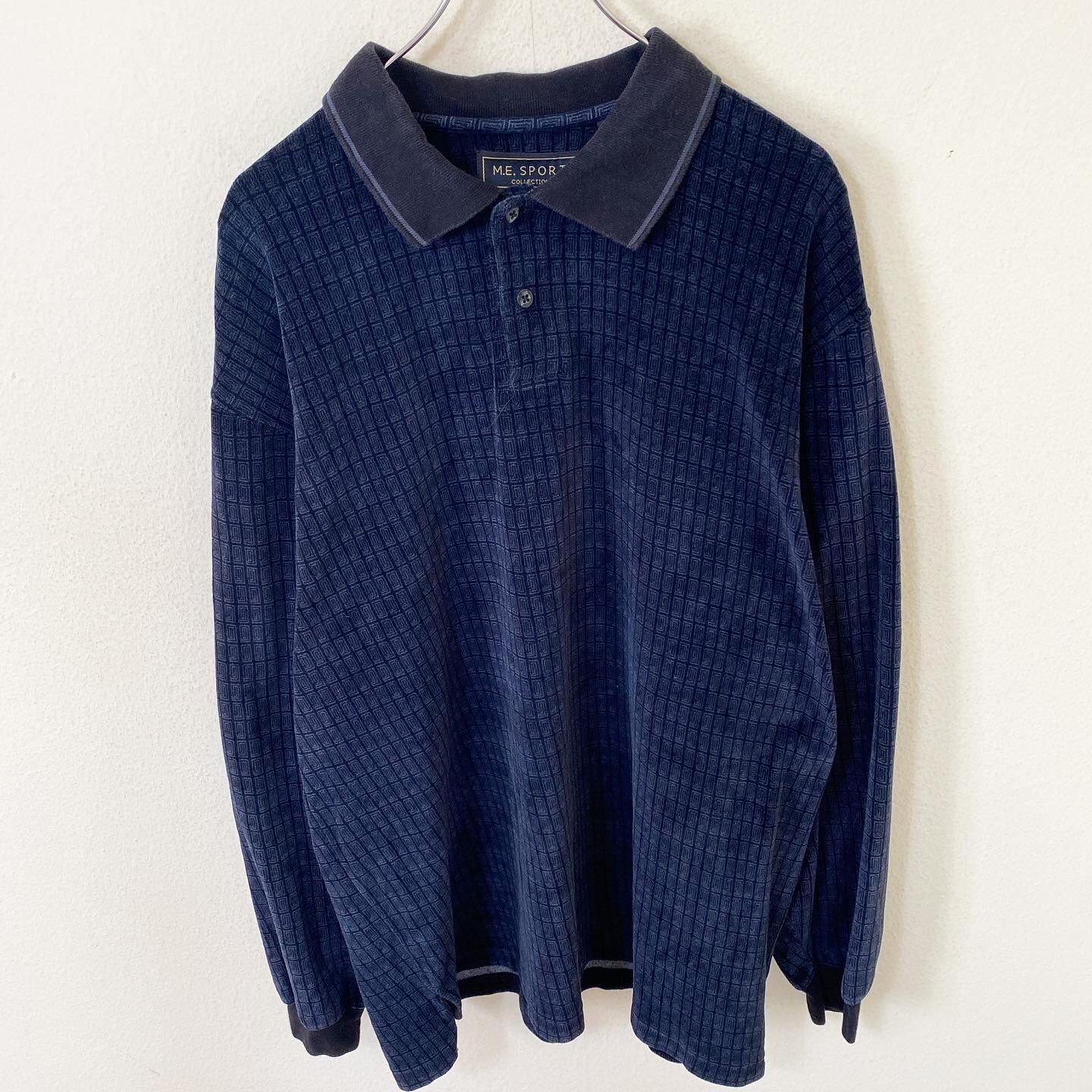 Vintage ベロア 総柄 デザイン ポロシャツ 長袖 古着 ヴィンテージ