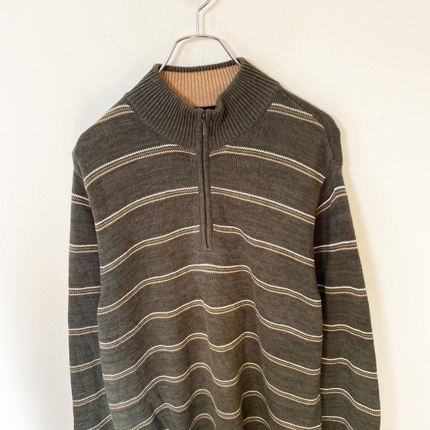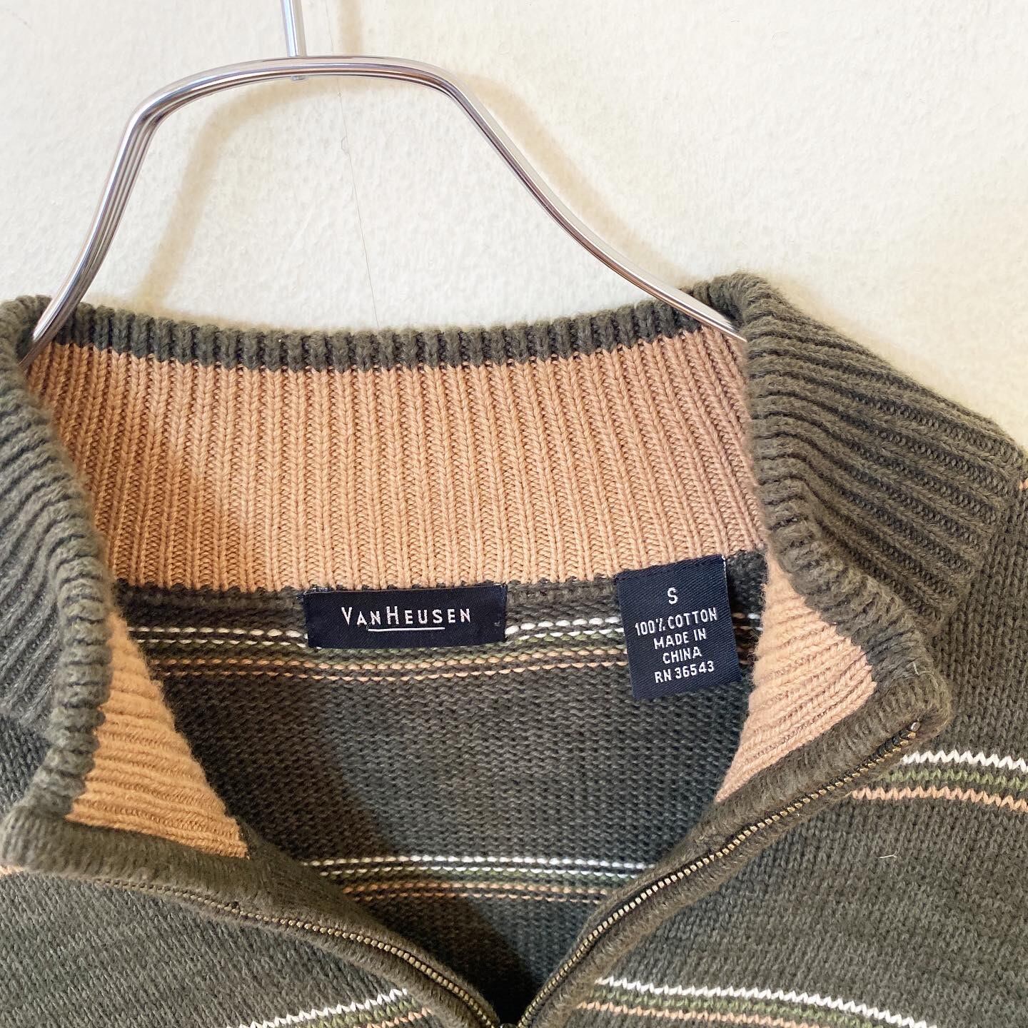 VANHEUSEN ハーフジップ ボーダー ニット 古着 アメカジ ストリート