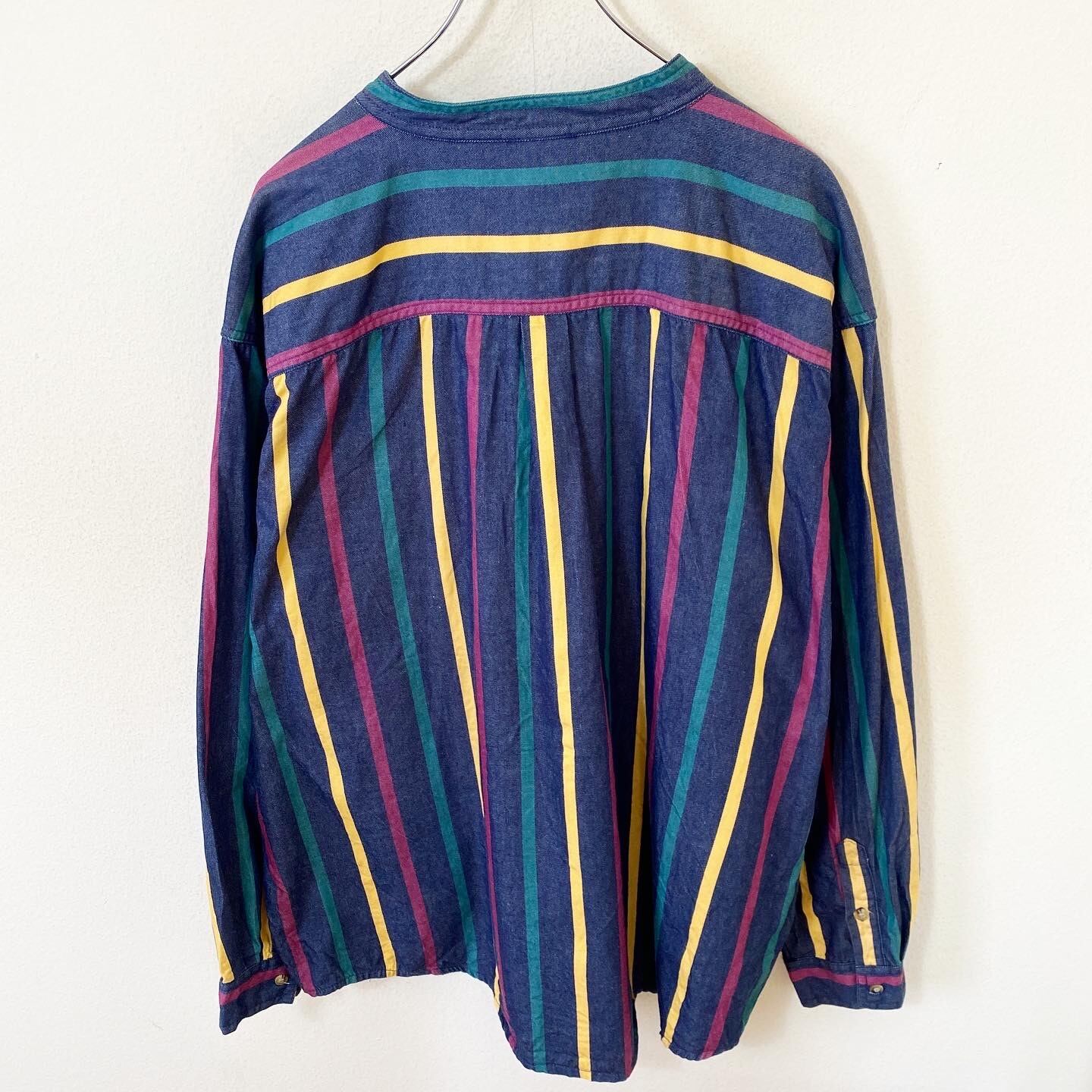 90s〜00s KENSHINGTON ROAD ノーカラー ストライプ シャツ
