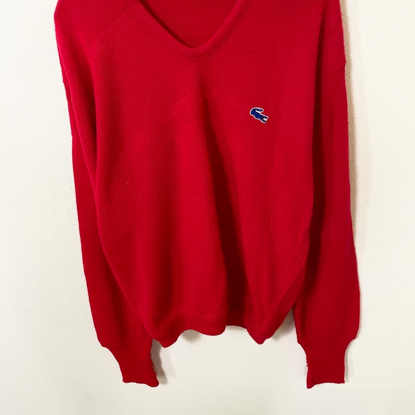 70s IZOD LACOSTE 糸巻きタグ 刺繍ロゴ Vネック ニット 古着 ヴィンテージ