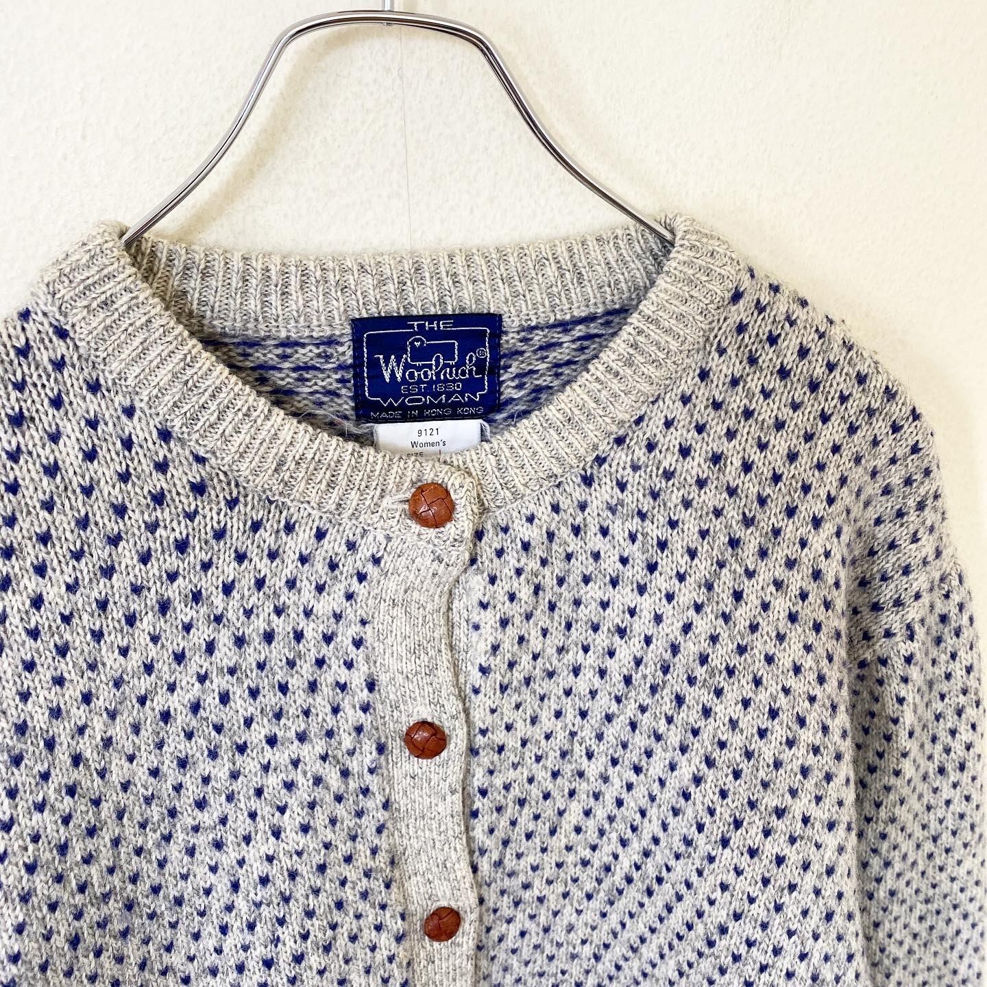 80s WOOLRICH バーズアイ ニット カーディガン 古着 ヴィンテージ