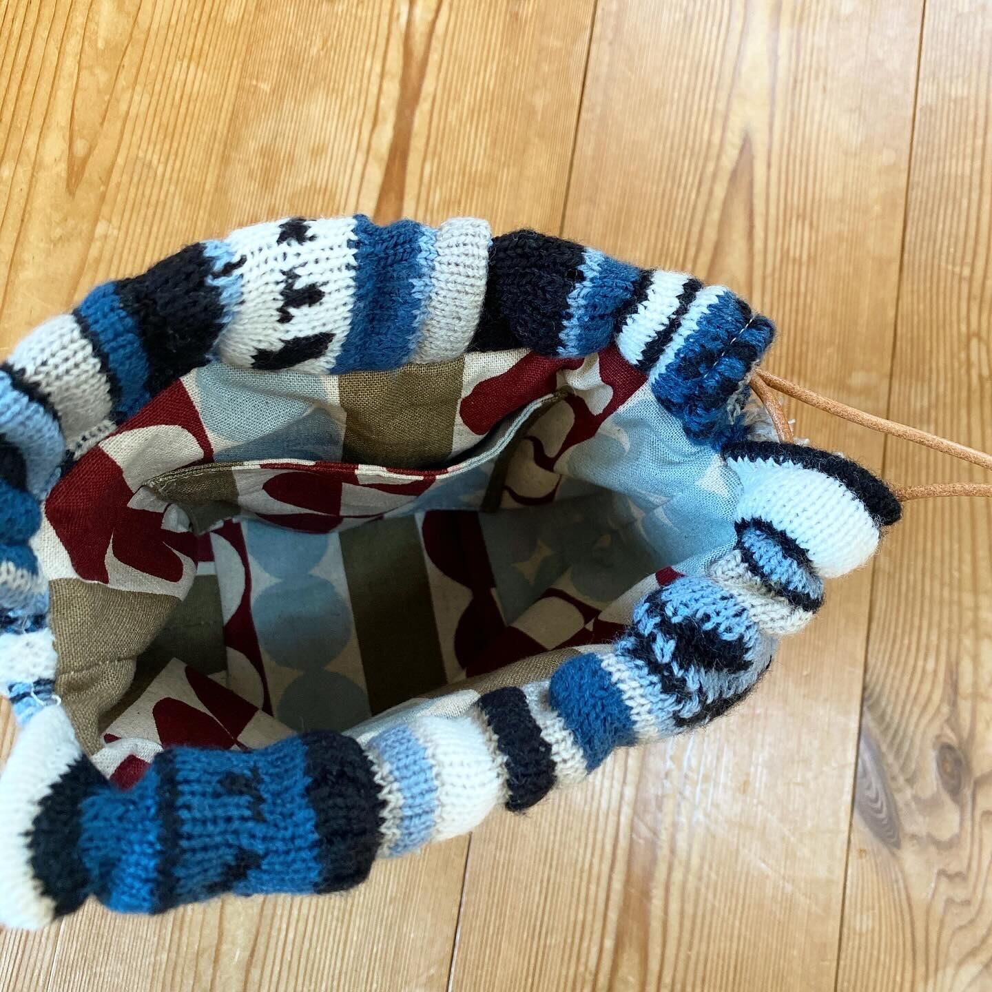 古着の3Dニットなどをリメイクし1点1点丁寧にハンドメイドで作り上げられた当店オリジナルの巾着バッグです。