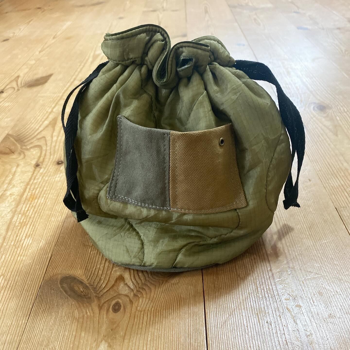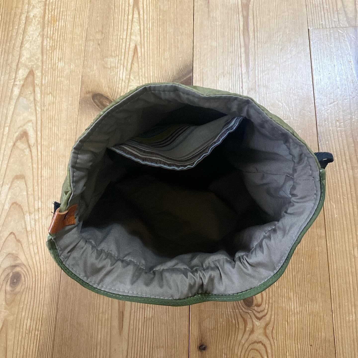 78年製と88年製のU.S.ARMY M-65ライナーを贅沢に使用し作り上げられた、当店オリジナルのリメイク巾着バッグが入荷しました。