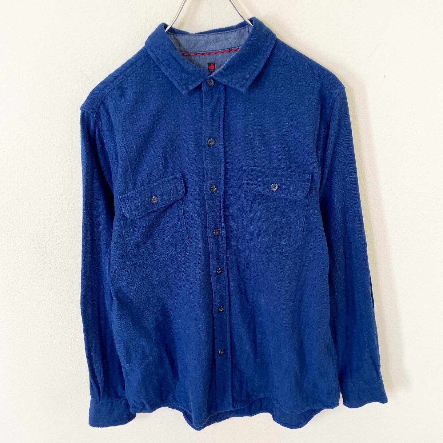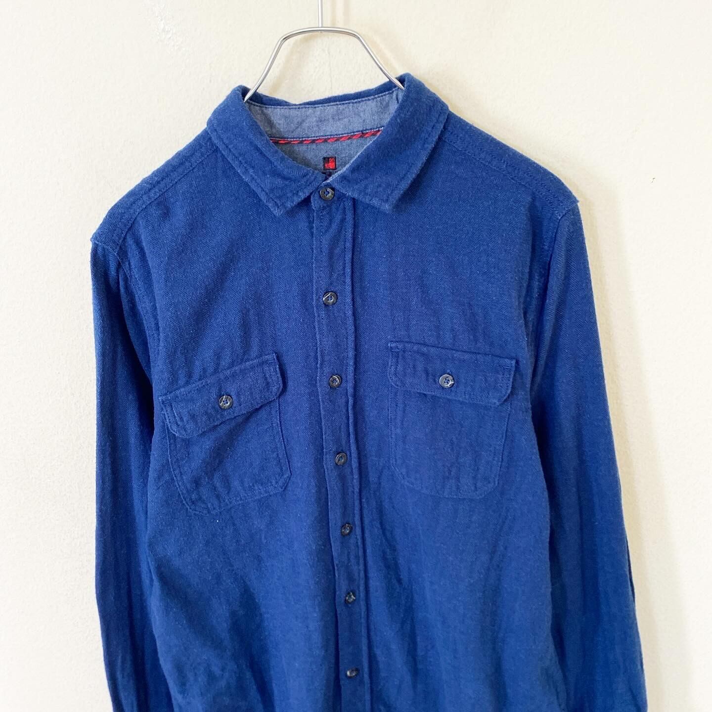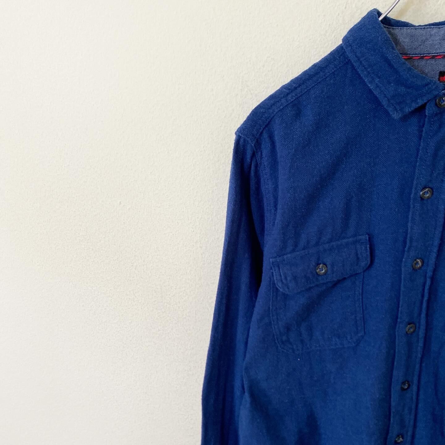デニムの様なネイビーボディとシンプルながらもこだわりの感じられる胸元のポケットのデザインがとても良い雰囲気の1着です。