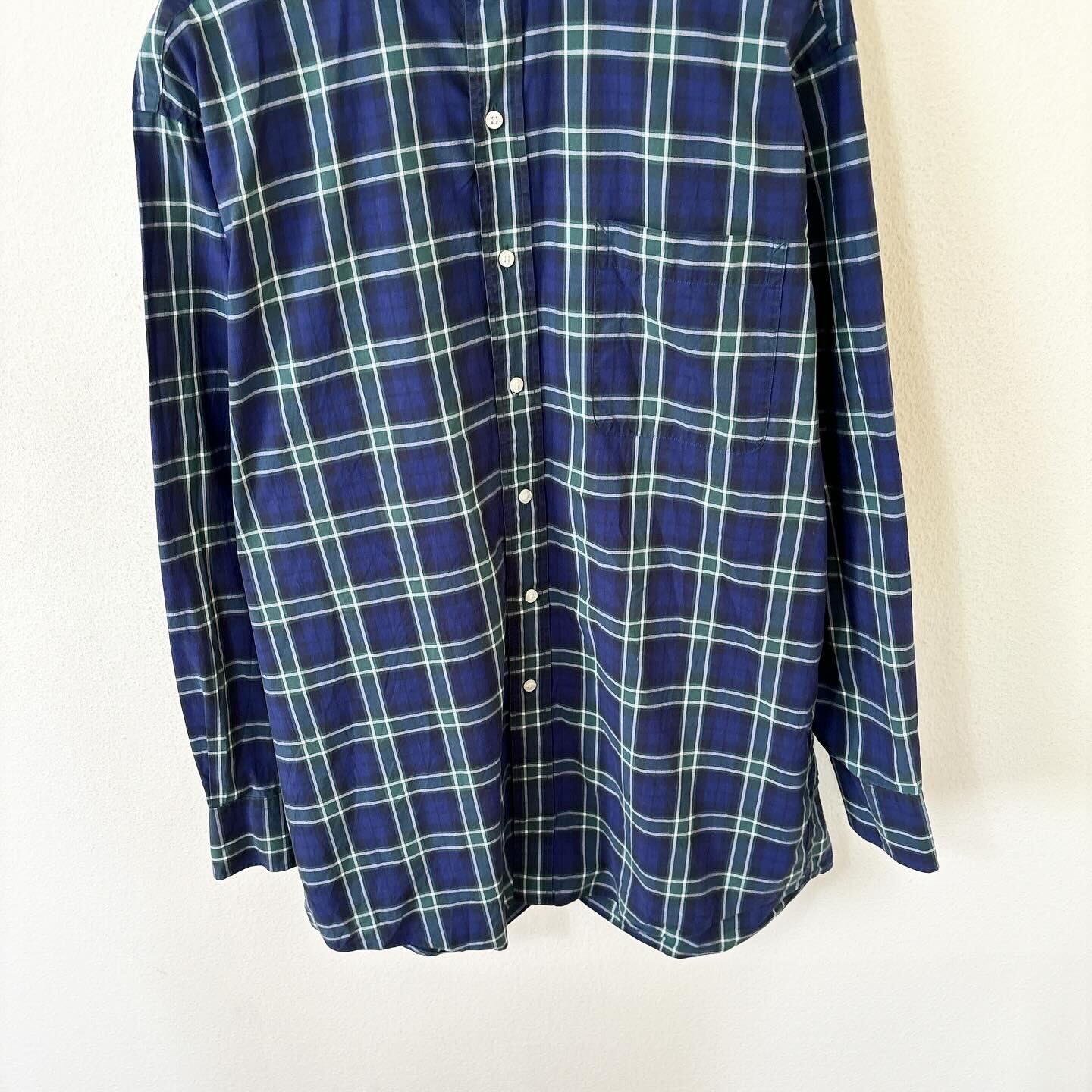 ネイビー×グリーン×ホワイトの絶妙なカラーリングで施されたチェックの風合いがとても良い雰囲気の1着です。