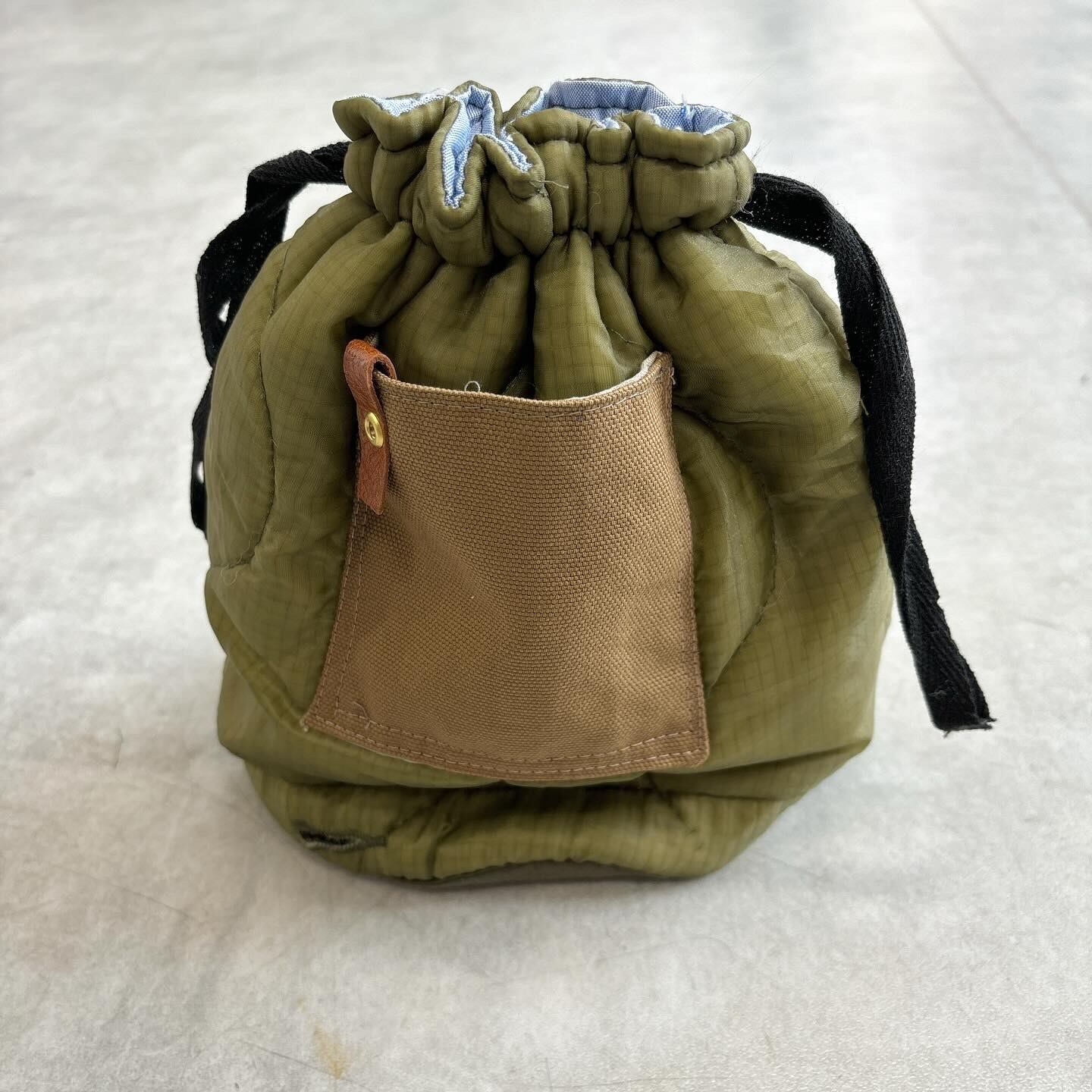1981年製と85年製のU.S.ARMY M-65キルティングライナーを贅沢に使用し作り上げられた、当店オリジナルのリメイク巾着バッグが入荷しました。