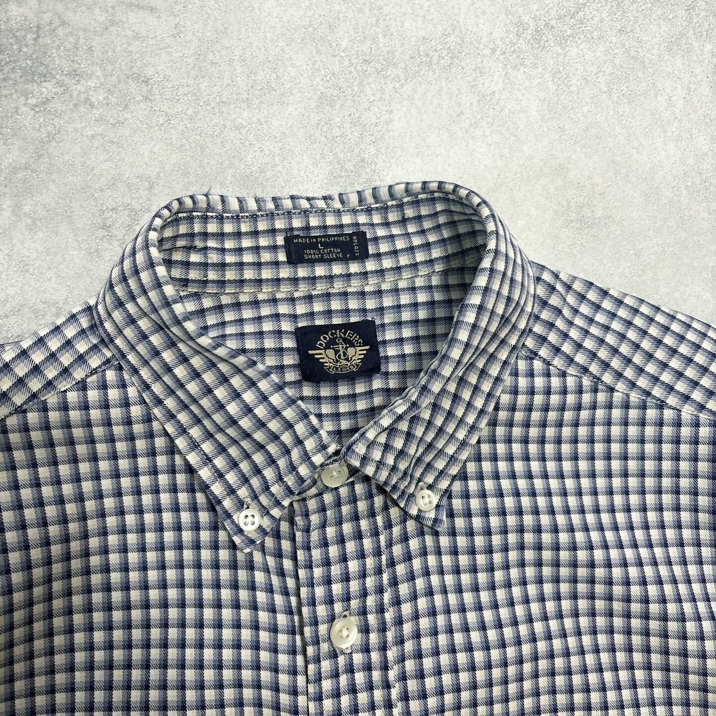 90s DOCKERS ドッカーズ 半袖 刺繍ロゴ チェック シャツ 古着
