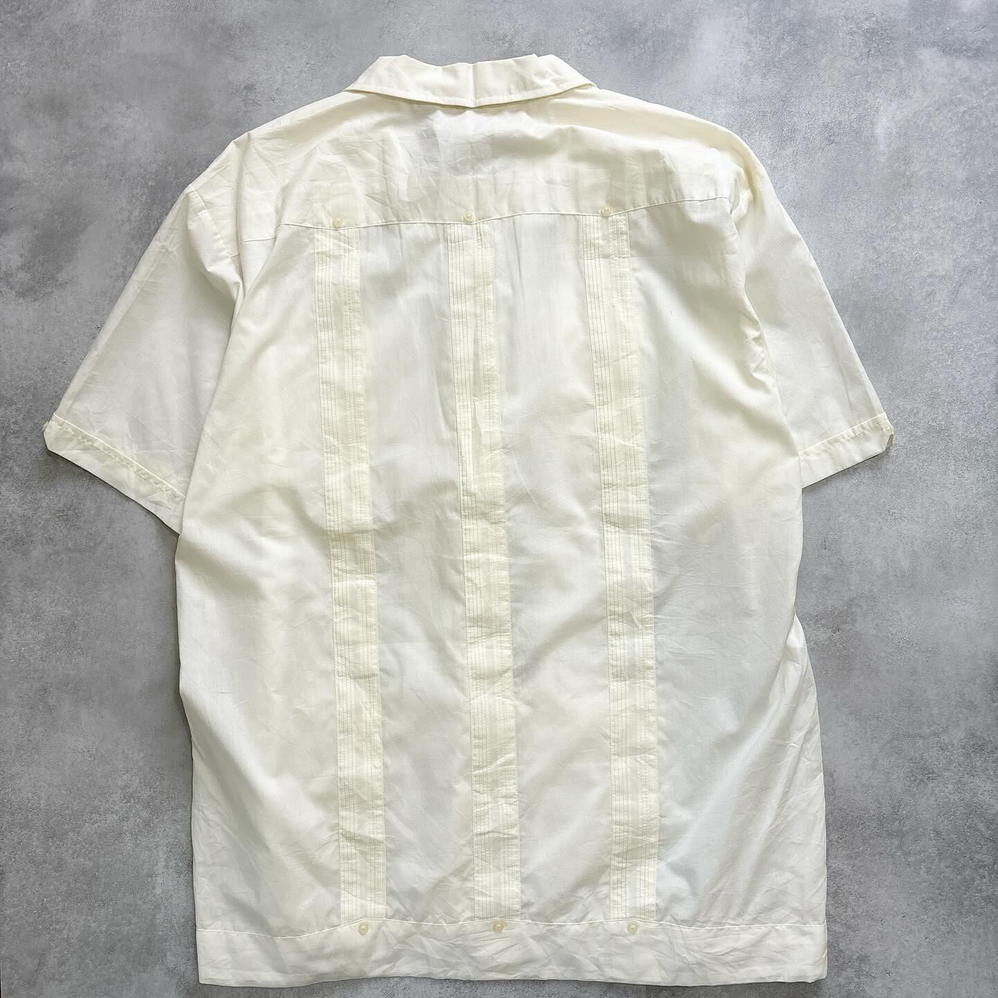 アイボリーのカラーリングとキューバシャツならではの刺繍、ポケットのデザインがとても良い雰囲気の1着です。