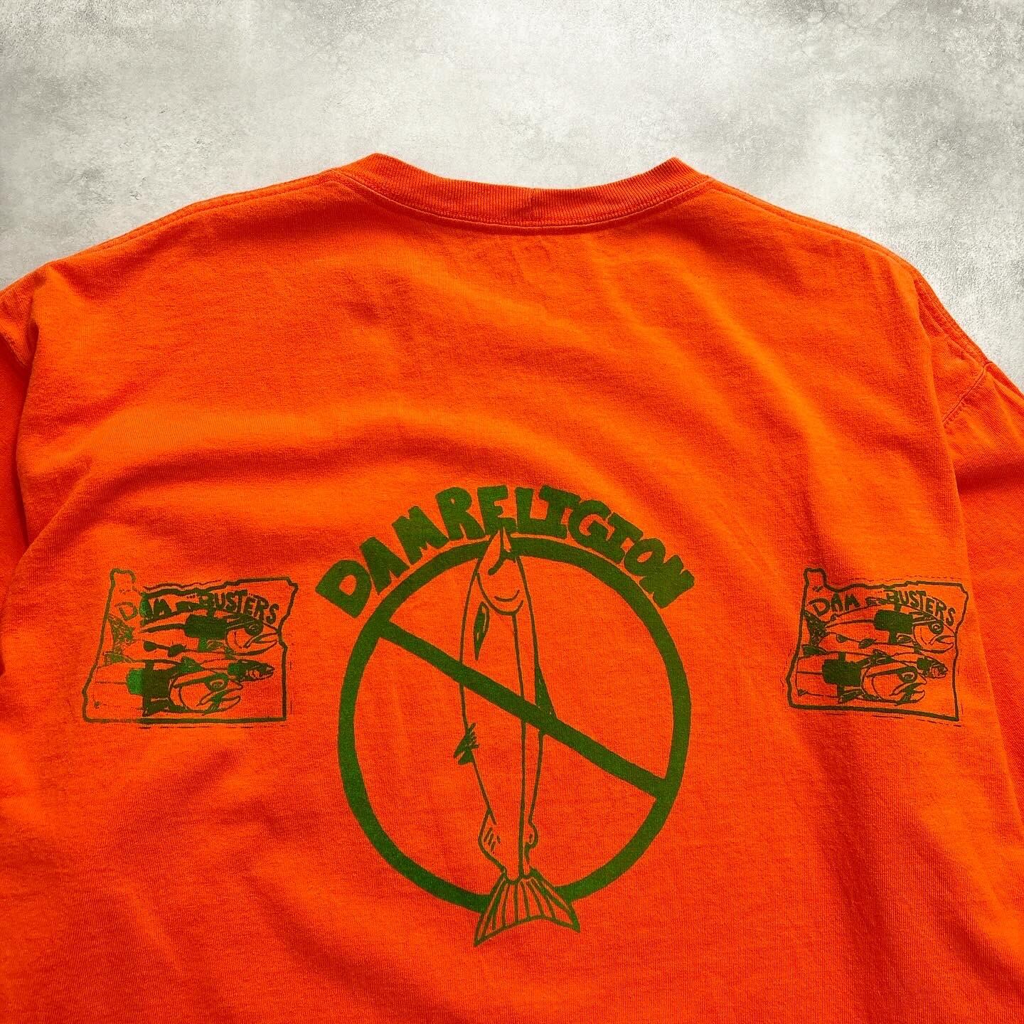 パッと目を惹くオレンジ色のボディと定番の胸元に入るワンポイント刺繍ロゴの風合いがとても良い雰囲気の1着です。