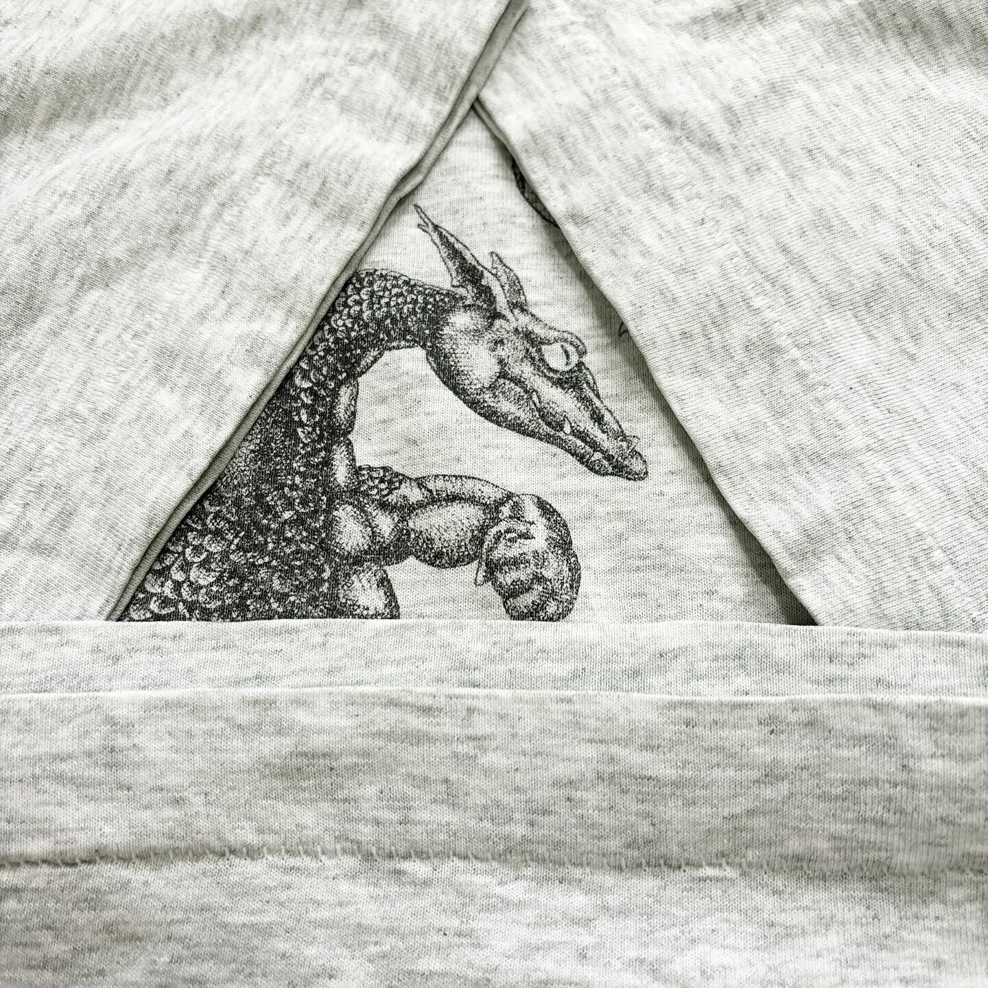 こちらは細かいタッチで描かれたドラゴン達がしっかり靴まで履いてバレーボールをしているデザイン。